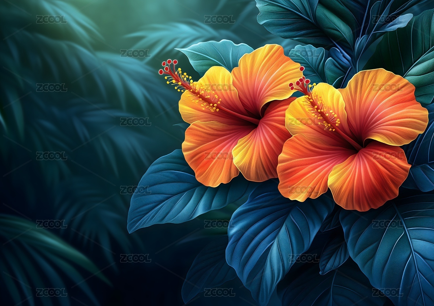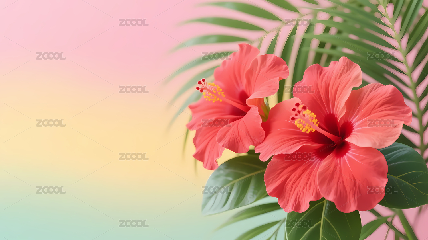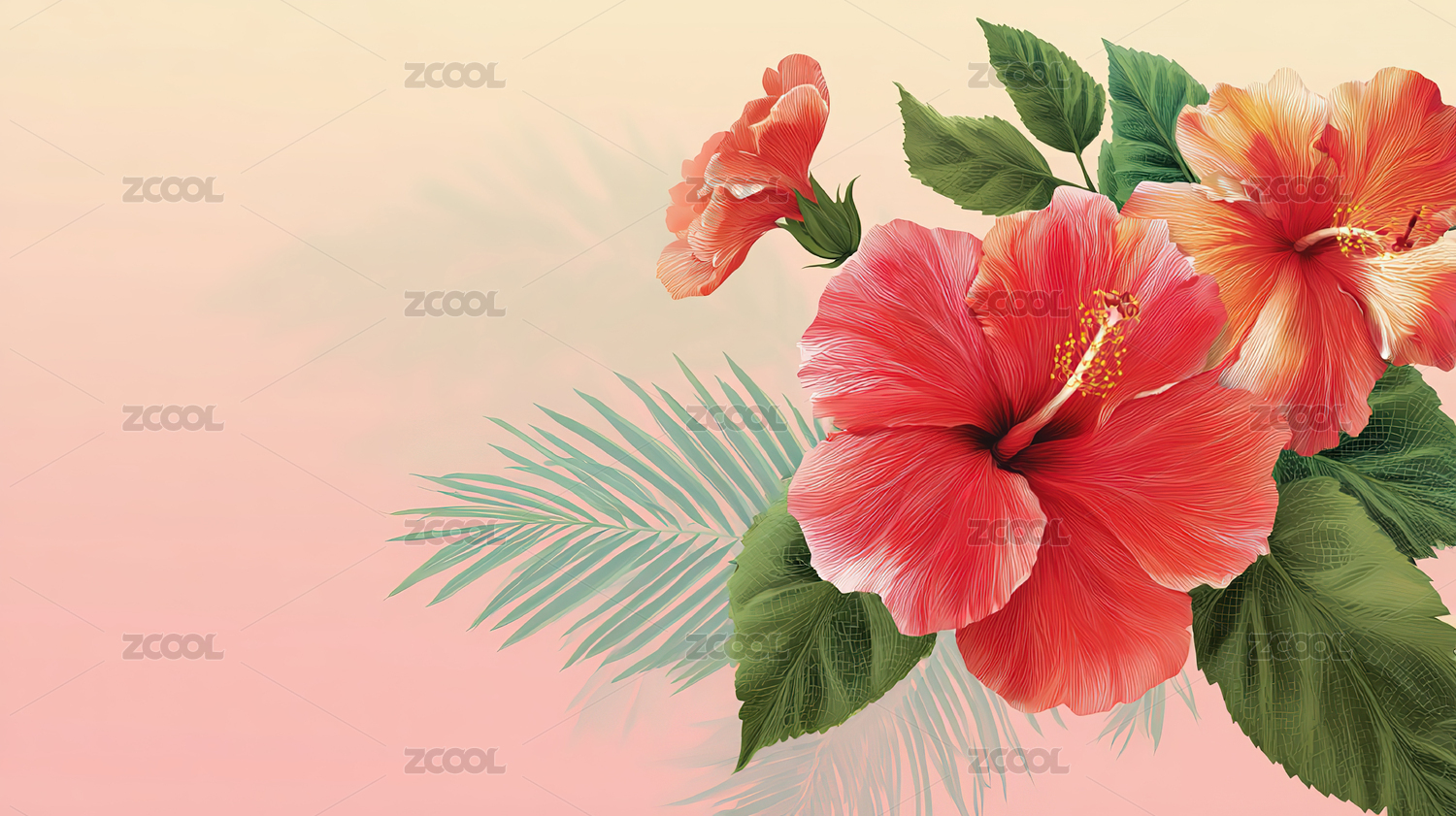 热带花卉背景与芙蓉花