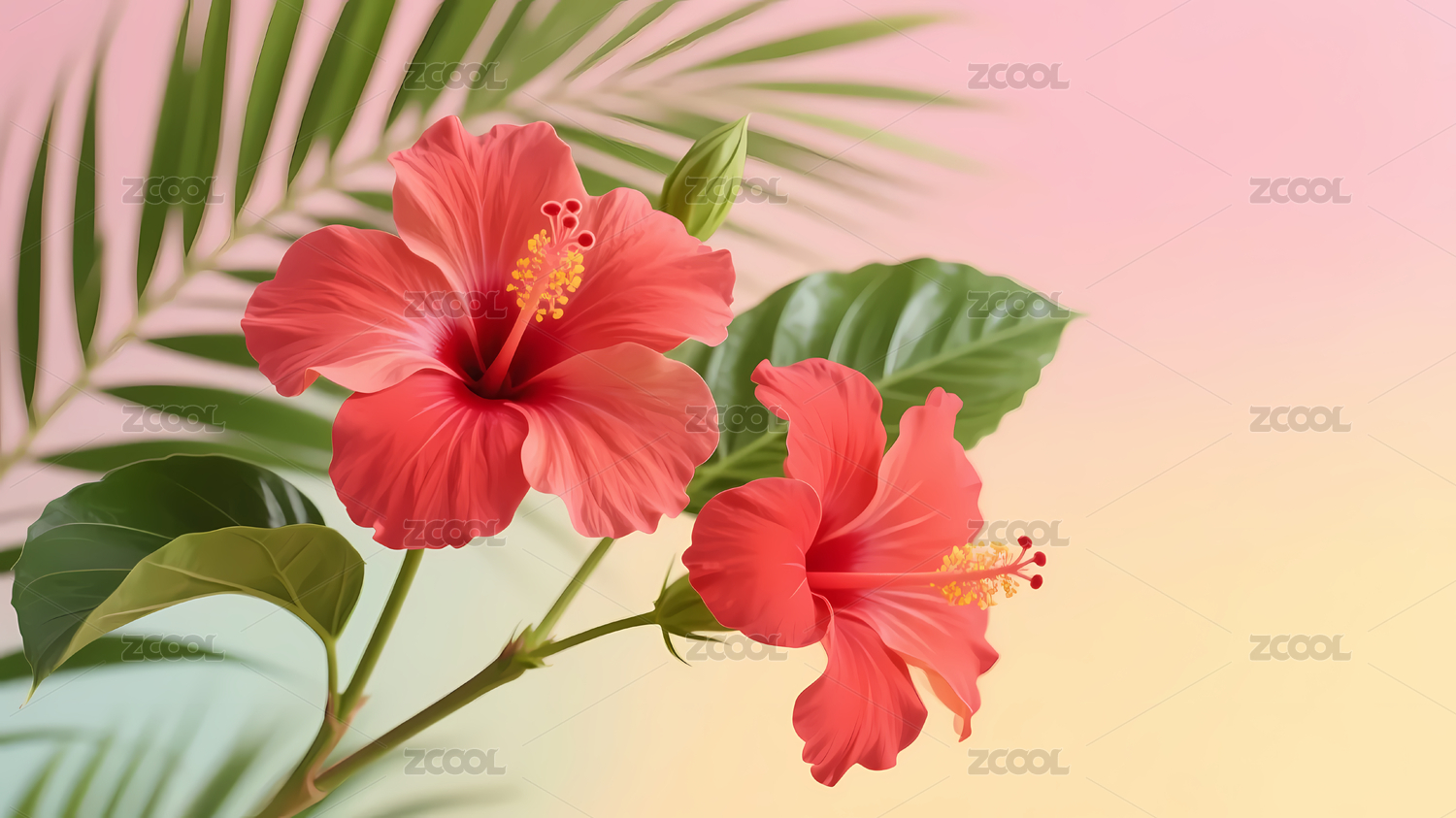 粉红色芙蓉花与渐变背景