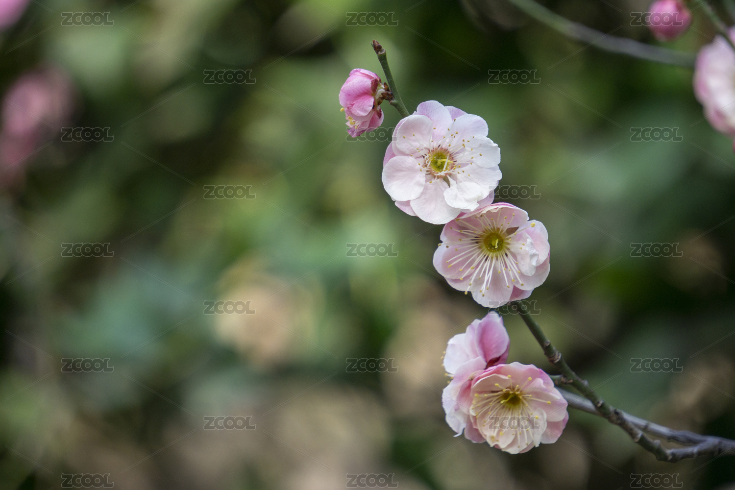 红梅,花朵,花枝,盛开,春季,自然,粉色,花苞,特写,植物