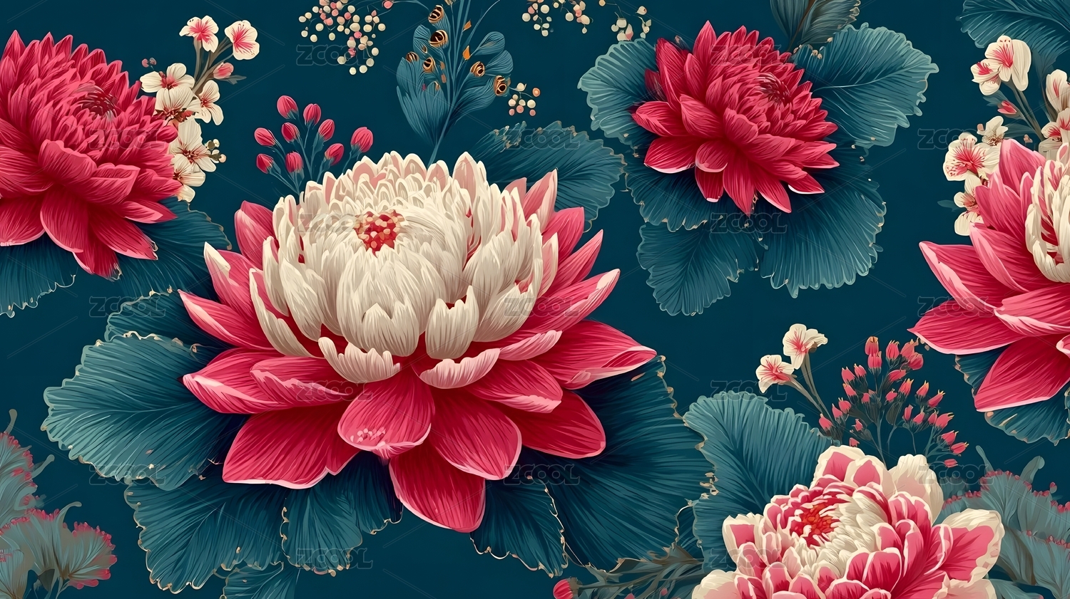 四方连续绚丽多彩的菊花印花背景