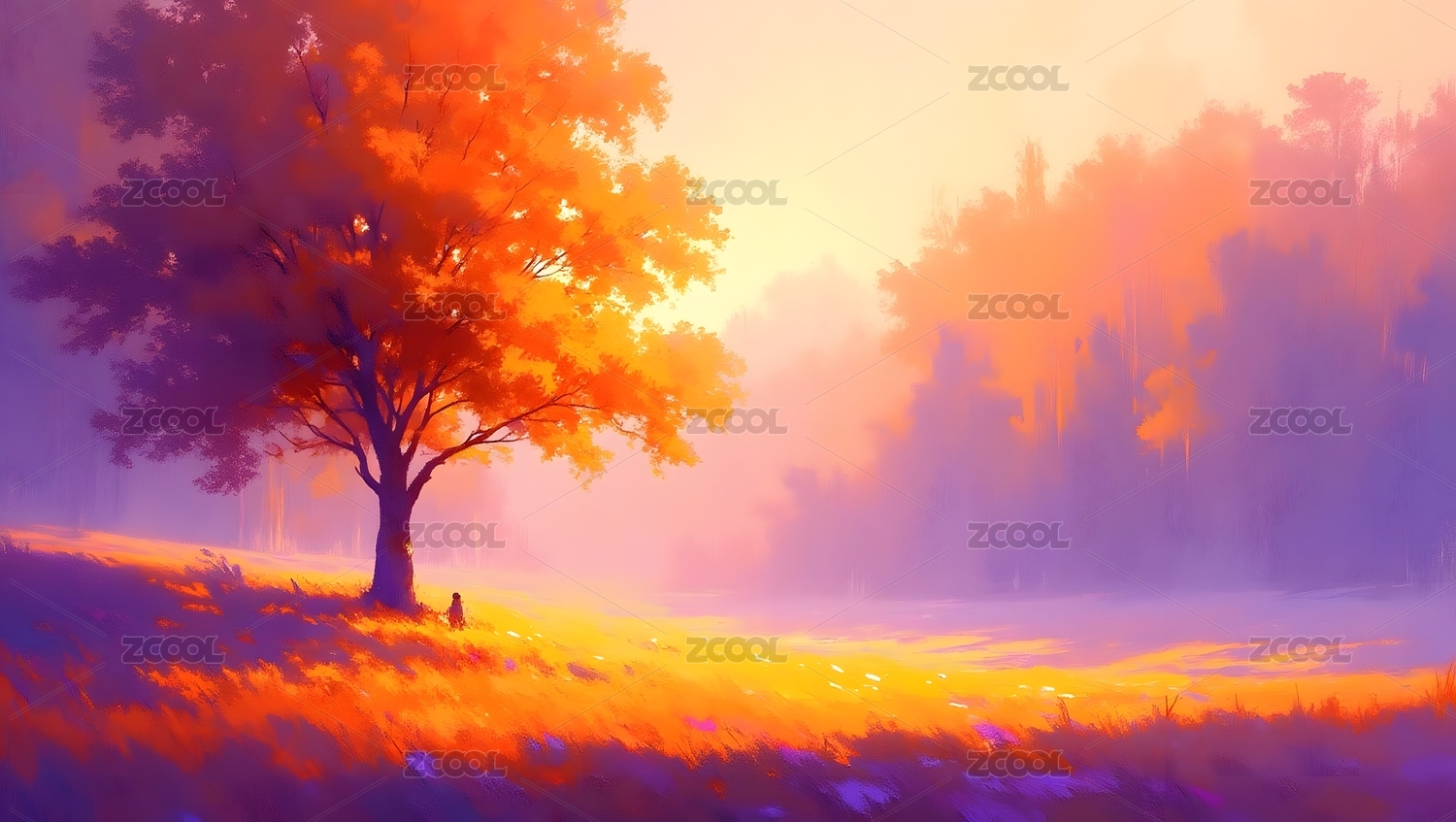 绚丽,水彩,风景,场景,彩色,艺术,插画,梦幻,景观,柔和