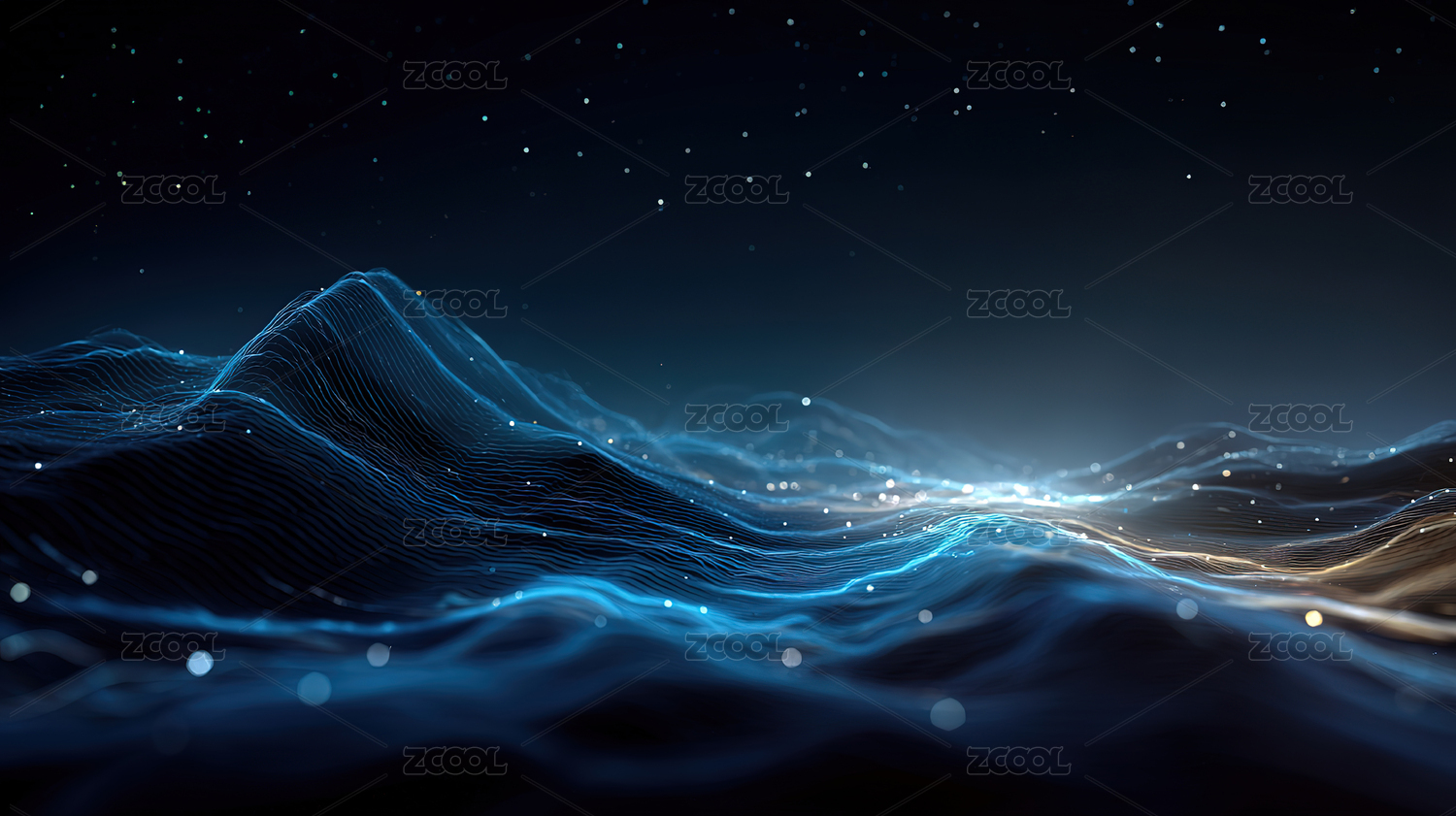 蓝色粒子科技光效抽象山脉