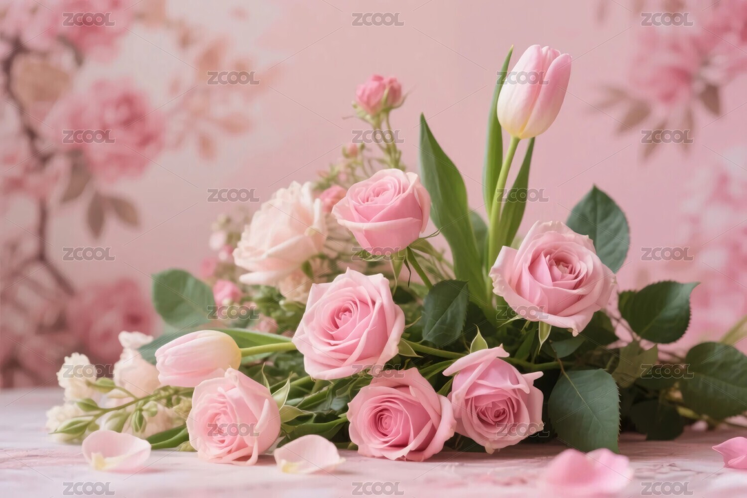 玫瑰,粉色,花束,美丽,清新,浪漫,装饰,花卉,礼物,花瓣