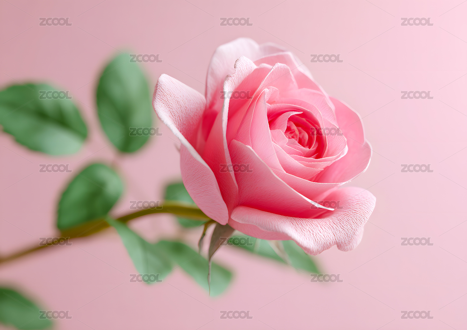 淡粉色背景上的精致玫瑰
