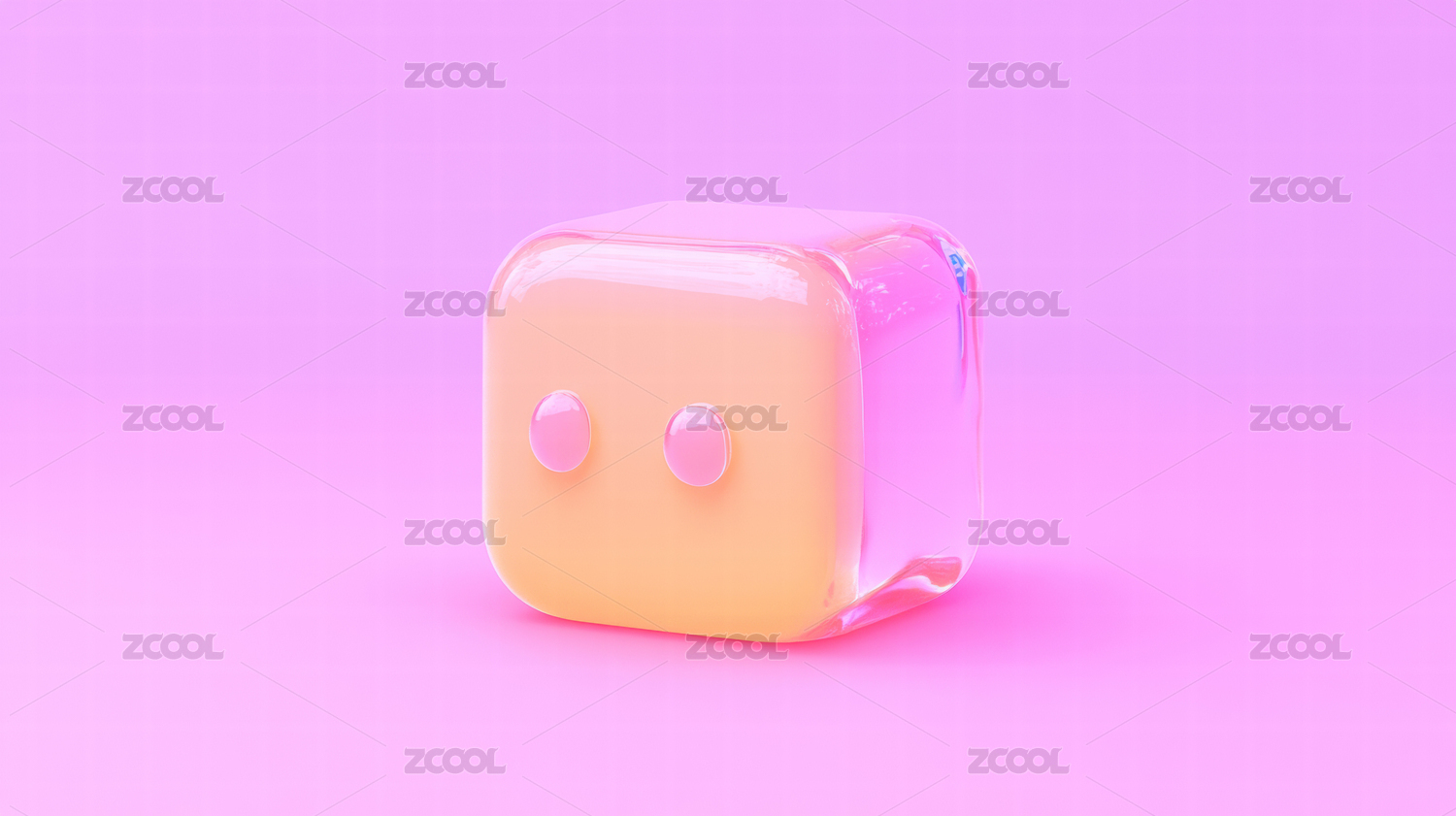 蓝色立方体在粉色背景上的融化效果