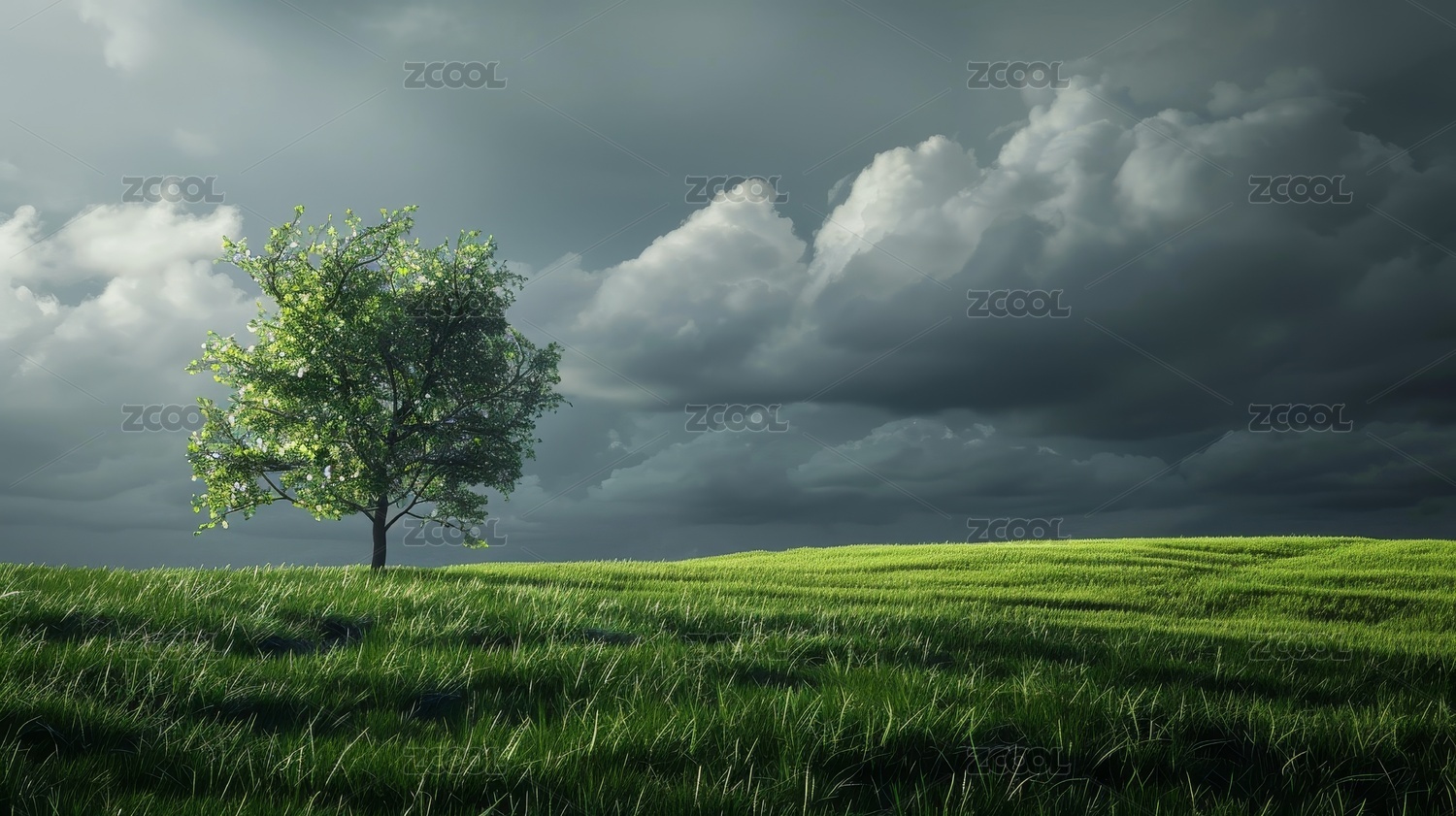 孤独的大树绿草如茵