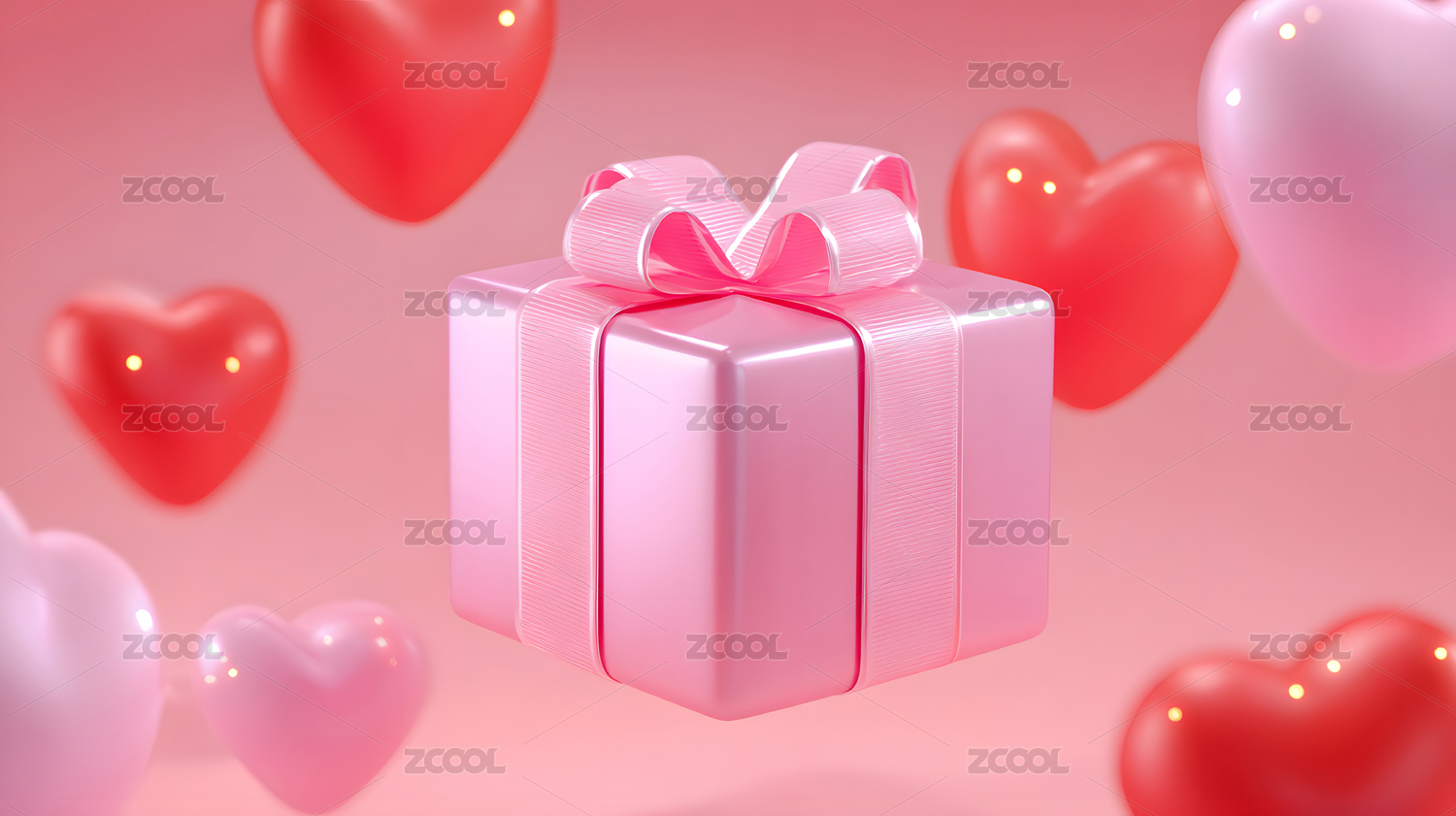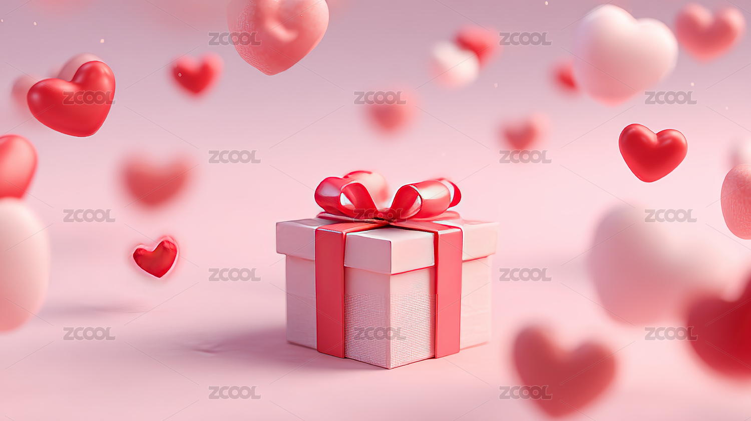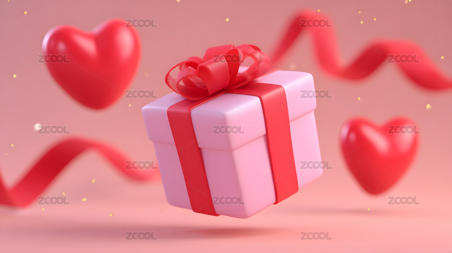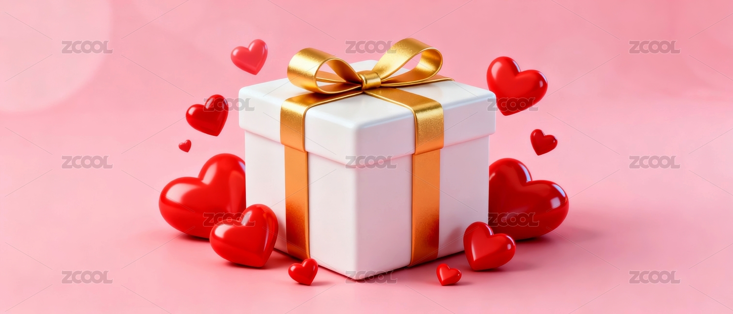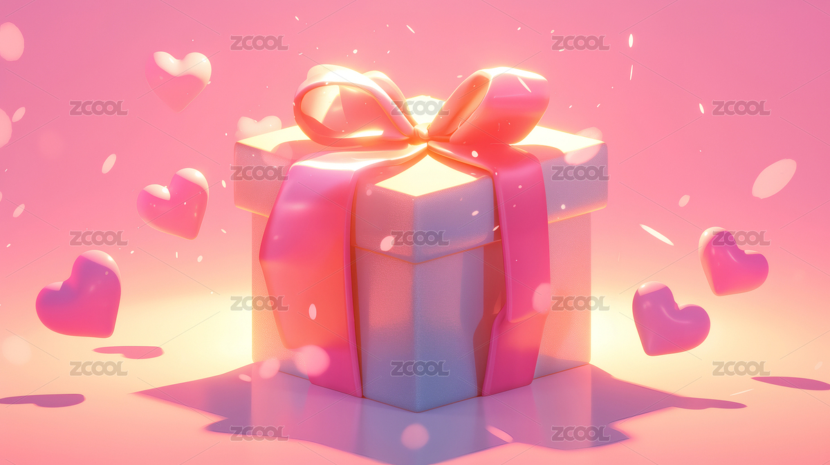 粉色礼物盒与红色爱心背景