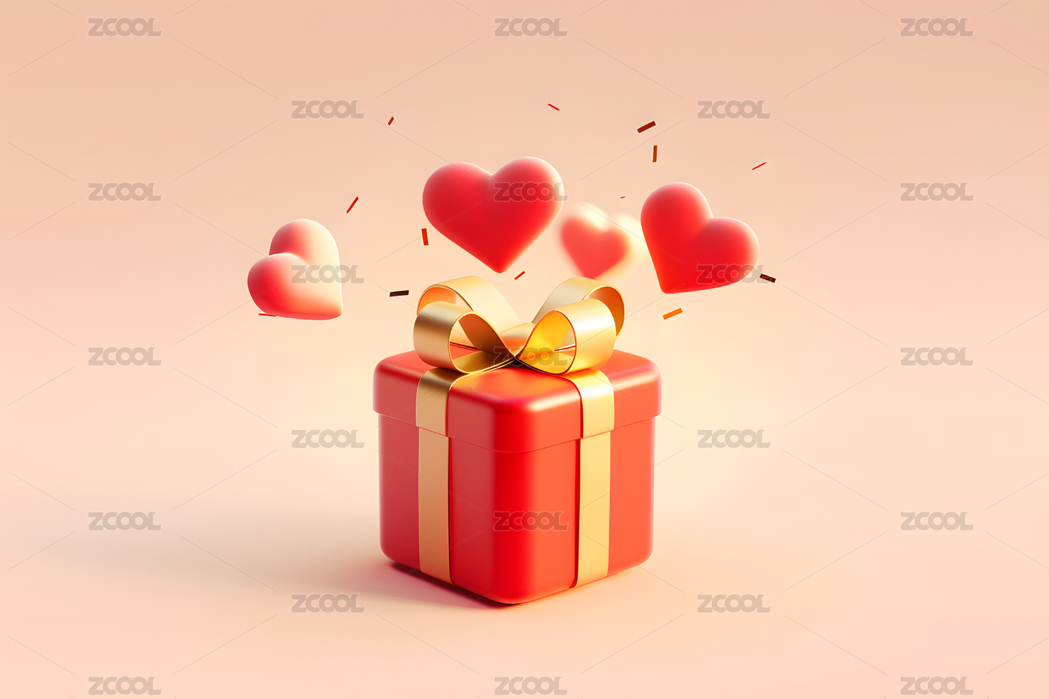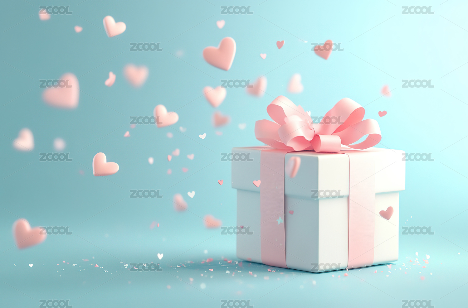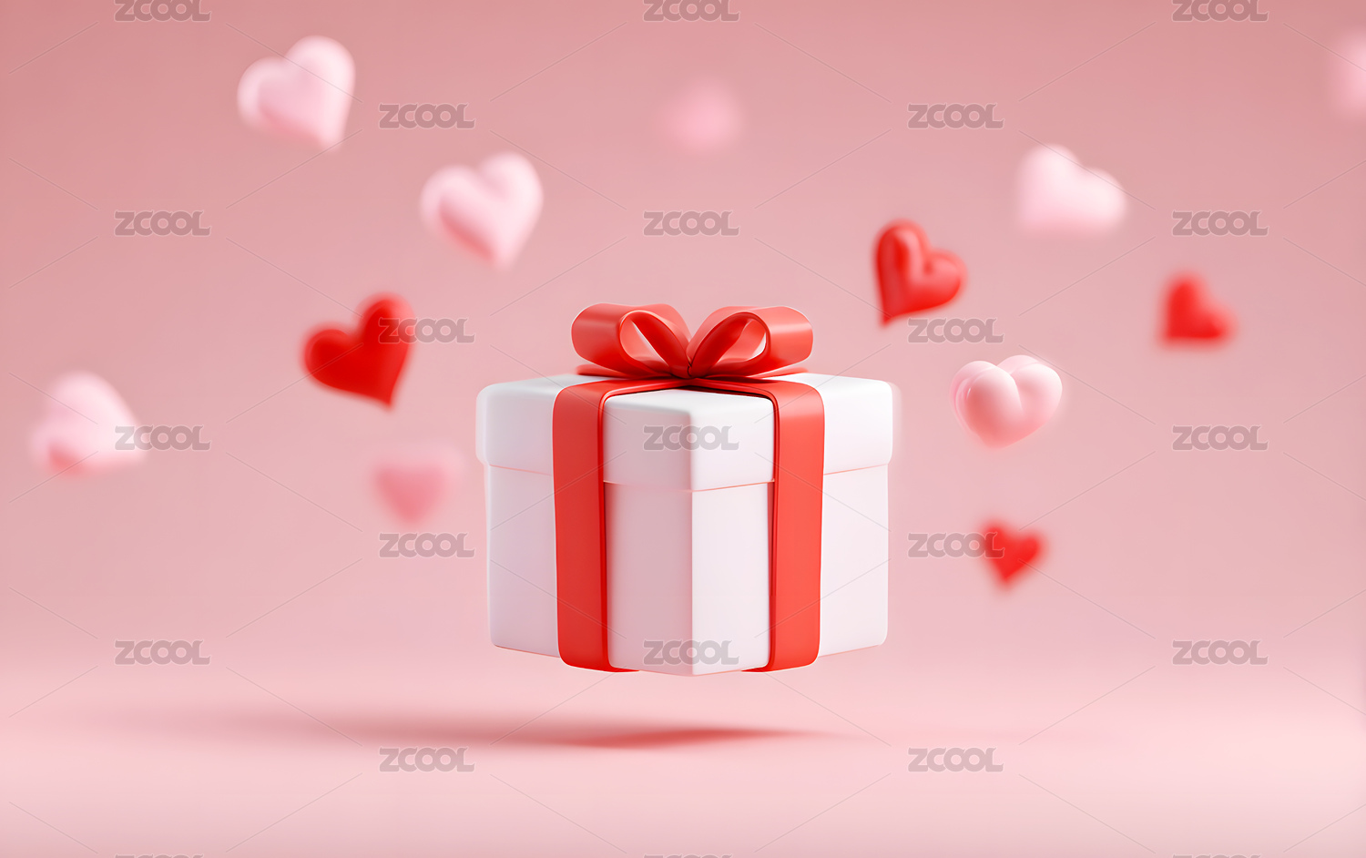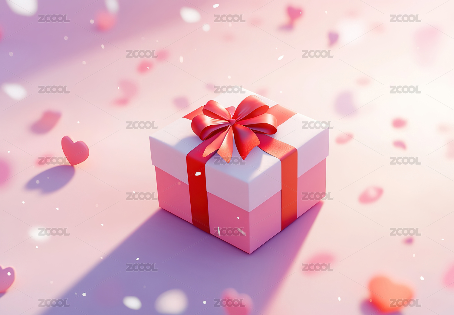 粉色礼物盒与红色爱心背景