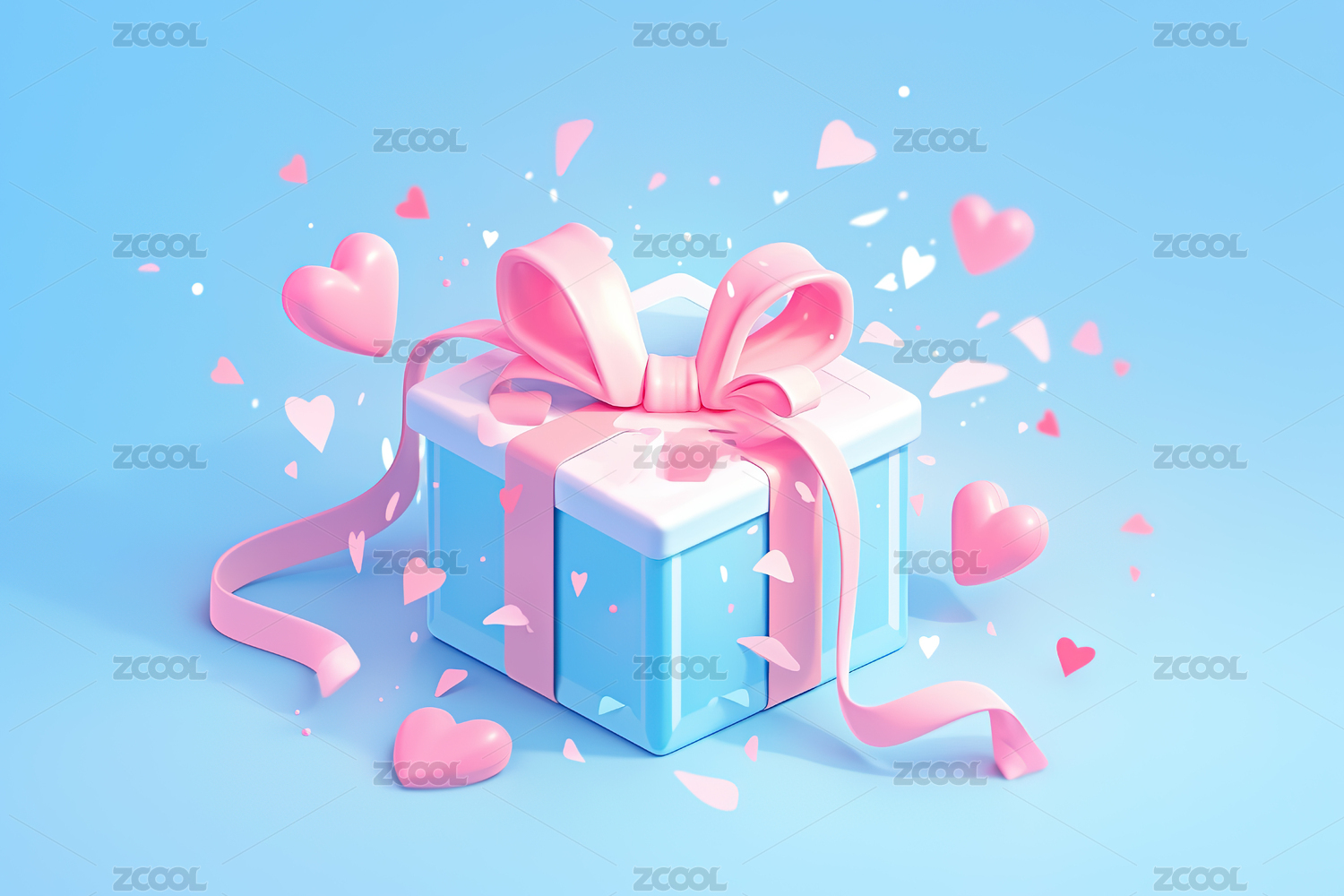 立体,3D,礼盒,礼物,情人节,节日,拟人,蝴蝶结,盒子,粉色