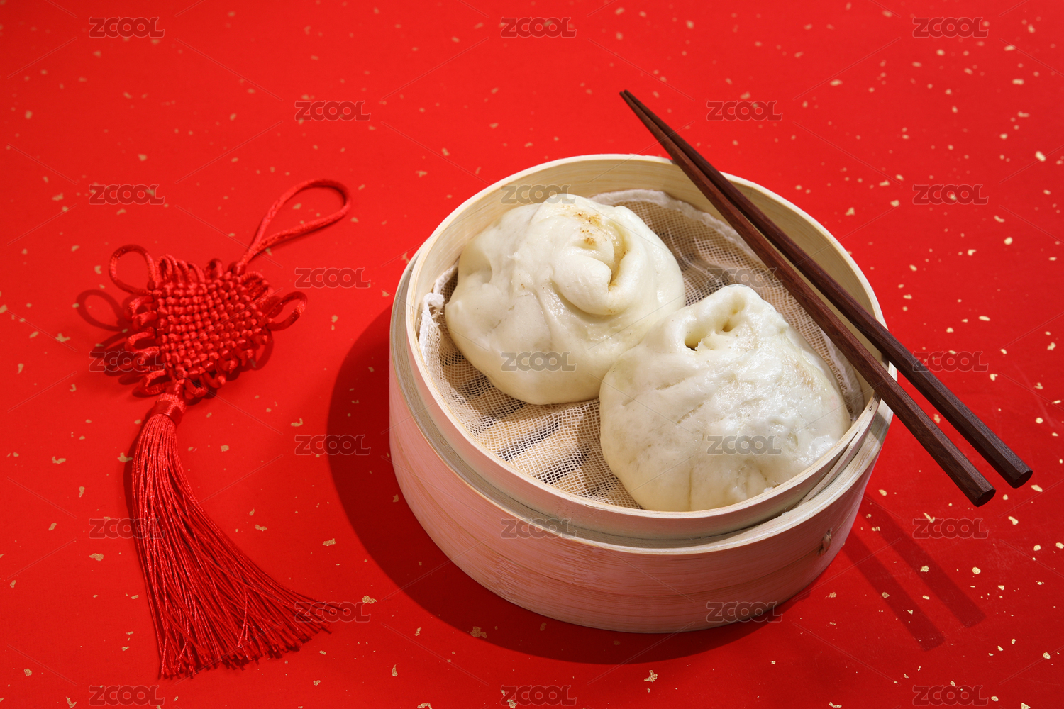 桌面上的一蒸笼中国传统中餐早餐美食包子