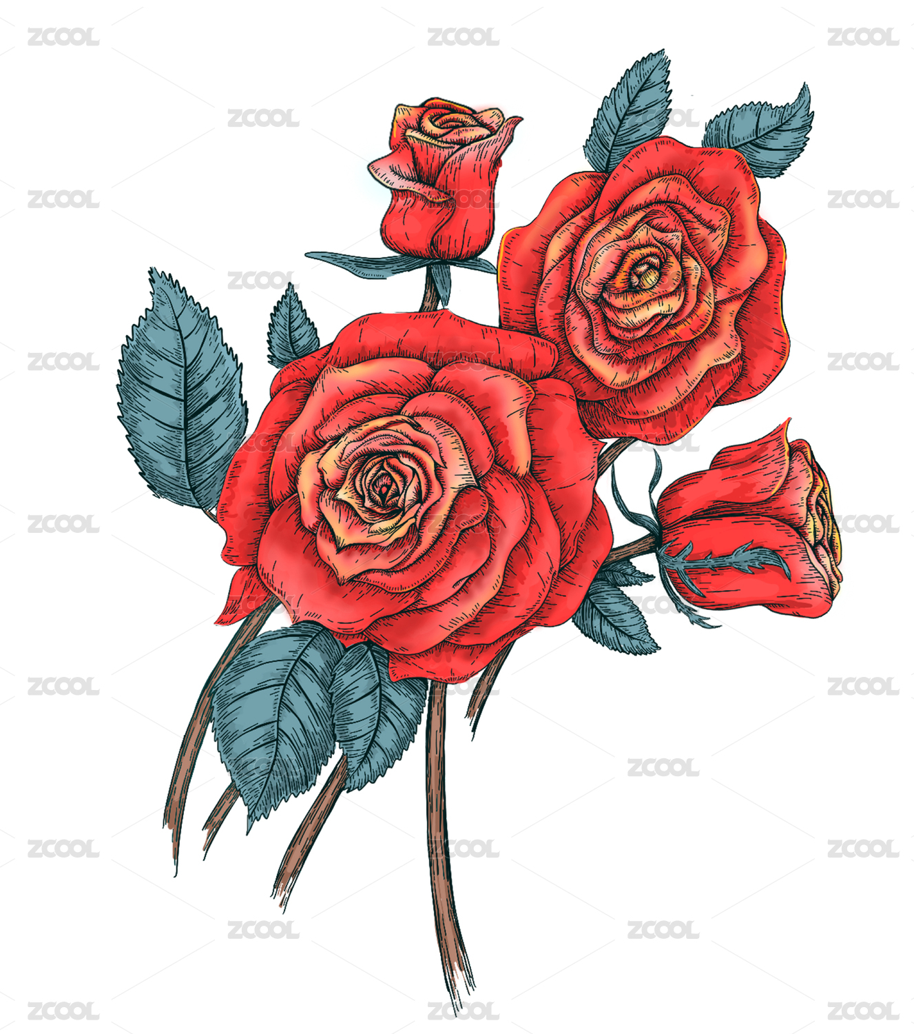 线条,植物,花瓣,花蕊,花苞,叶子,黑白,花卉,玫瑰,插画