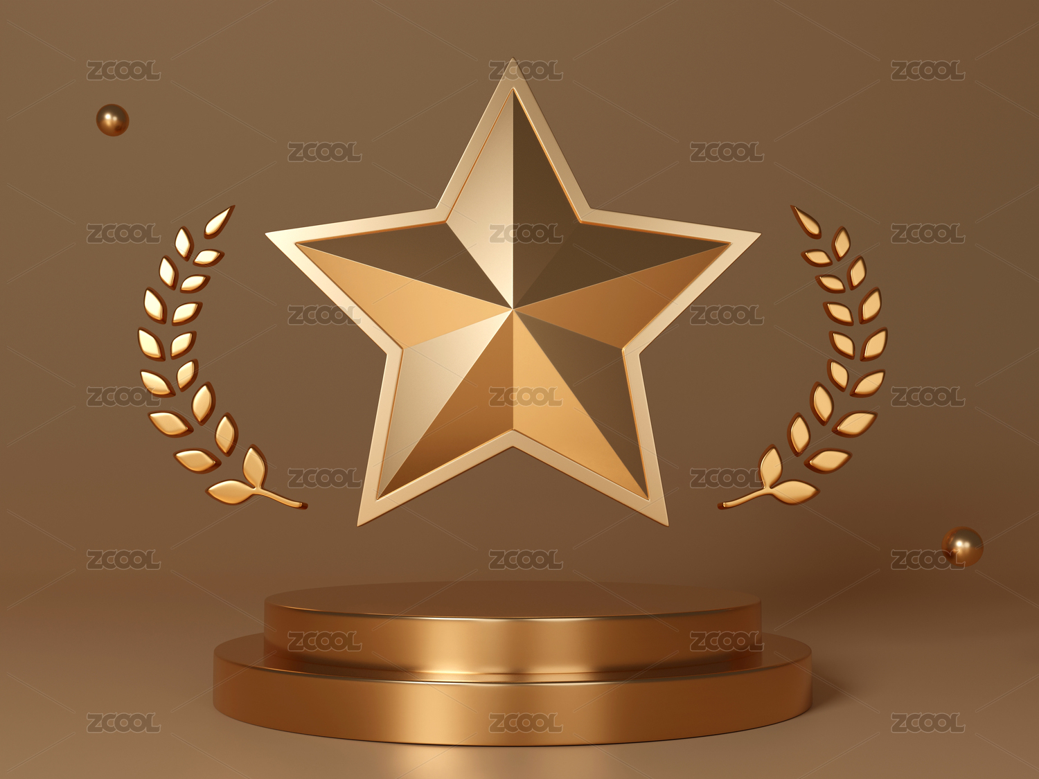 立体金色五角星奖章素材