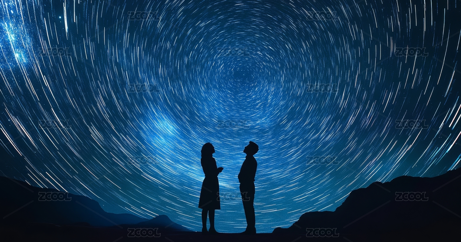 星空,剪影,光,天空,晚上,背影,城市,璀璨,星星,极光