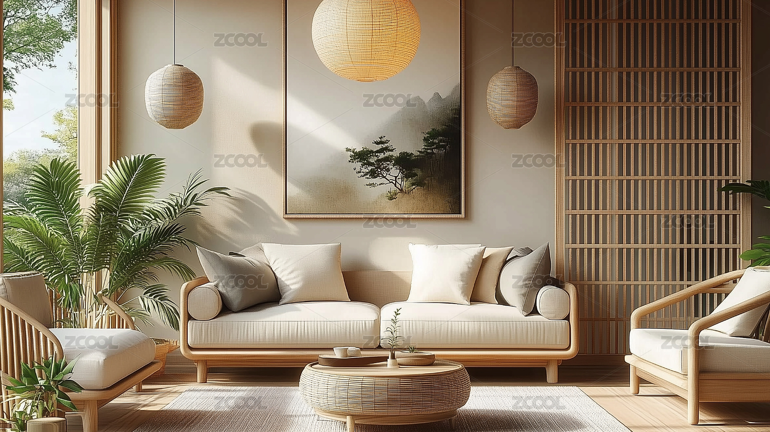 3D,室内,图案,设计,卧室,客厅,沙发,植物,茶几,装饰