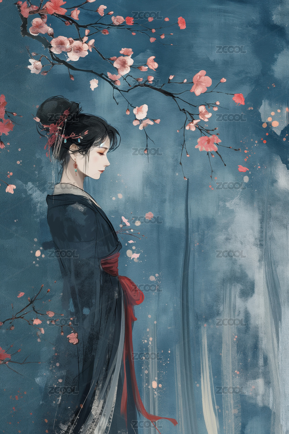 水墨画人物插画