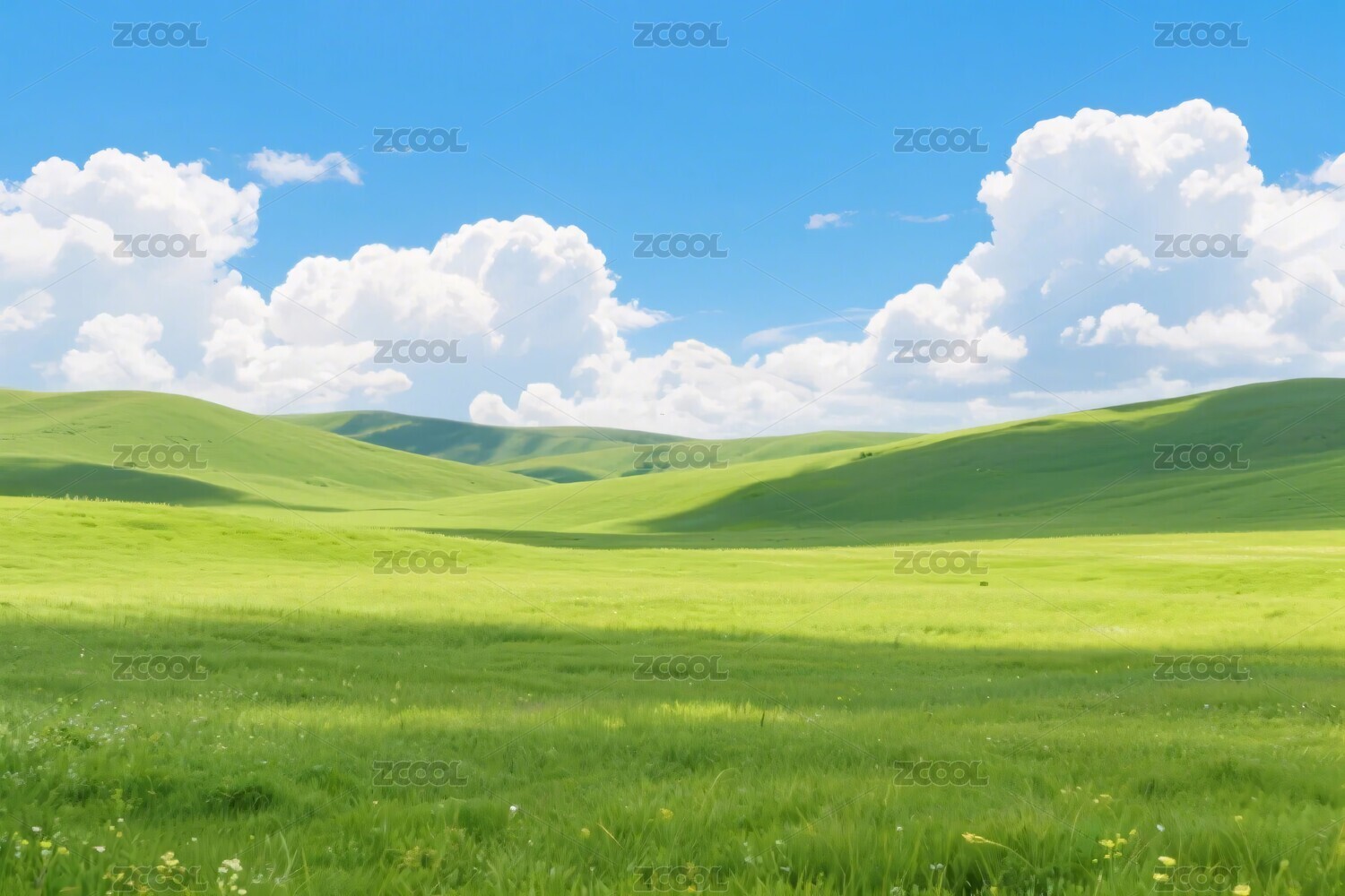 中国内蒙古蓝天白云下的绿色草原