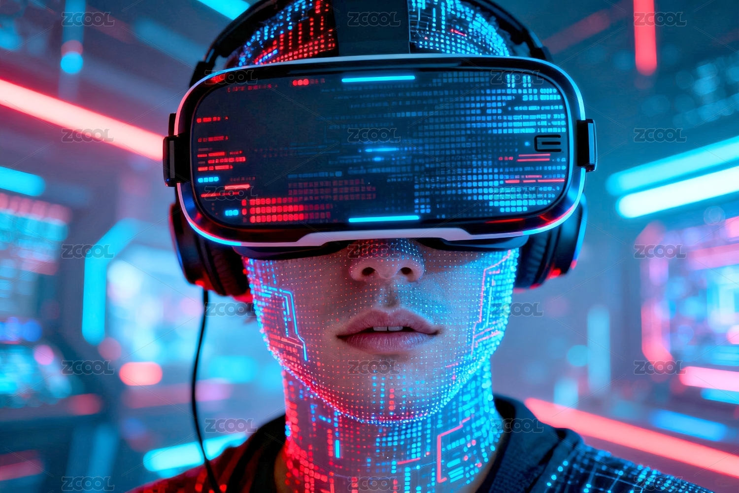 蓝色,网络,数据,AI,信息,创新,VR,元宇宙,少年,孩子