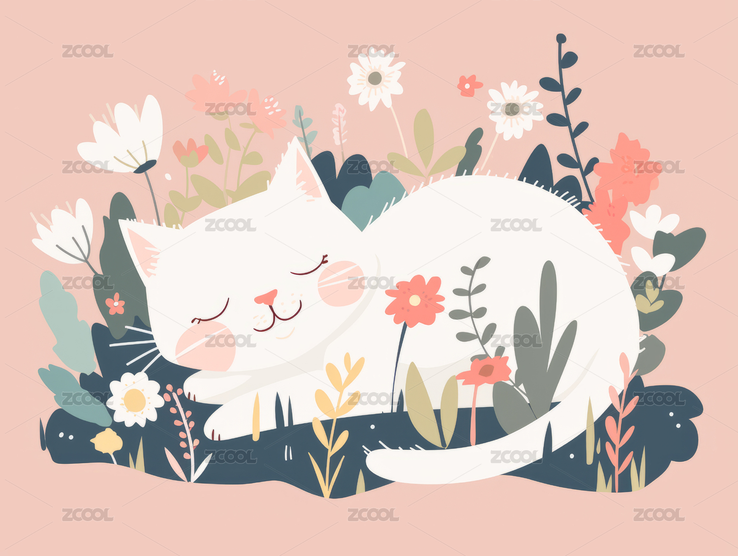 花丛中的猫咪插画