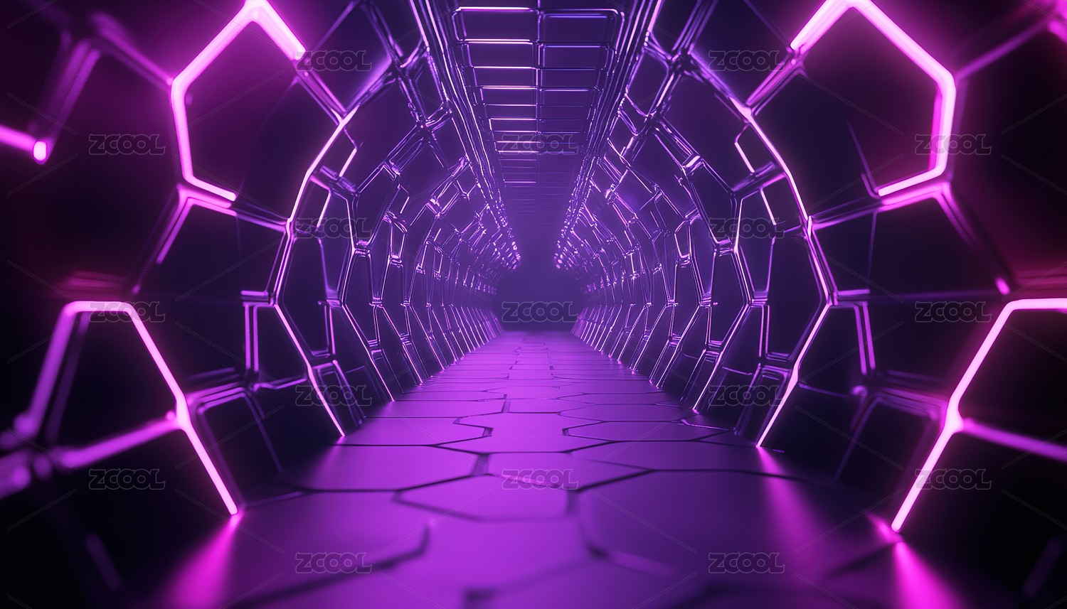 未来感六边形霓虹隧道