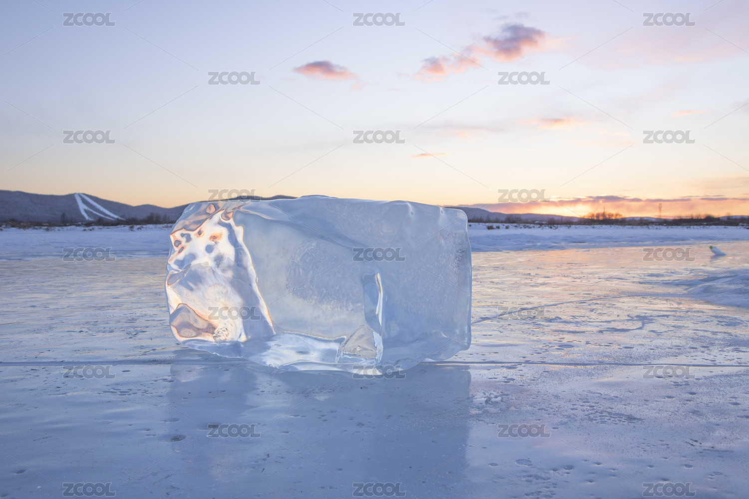 中国内蒙古自治区大兴安岭加格达奇区甘河上的冰块霞光