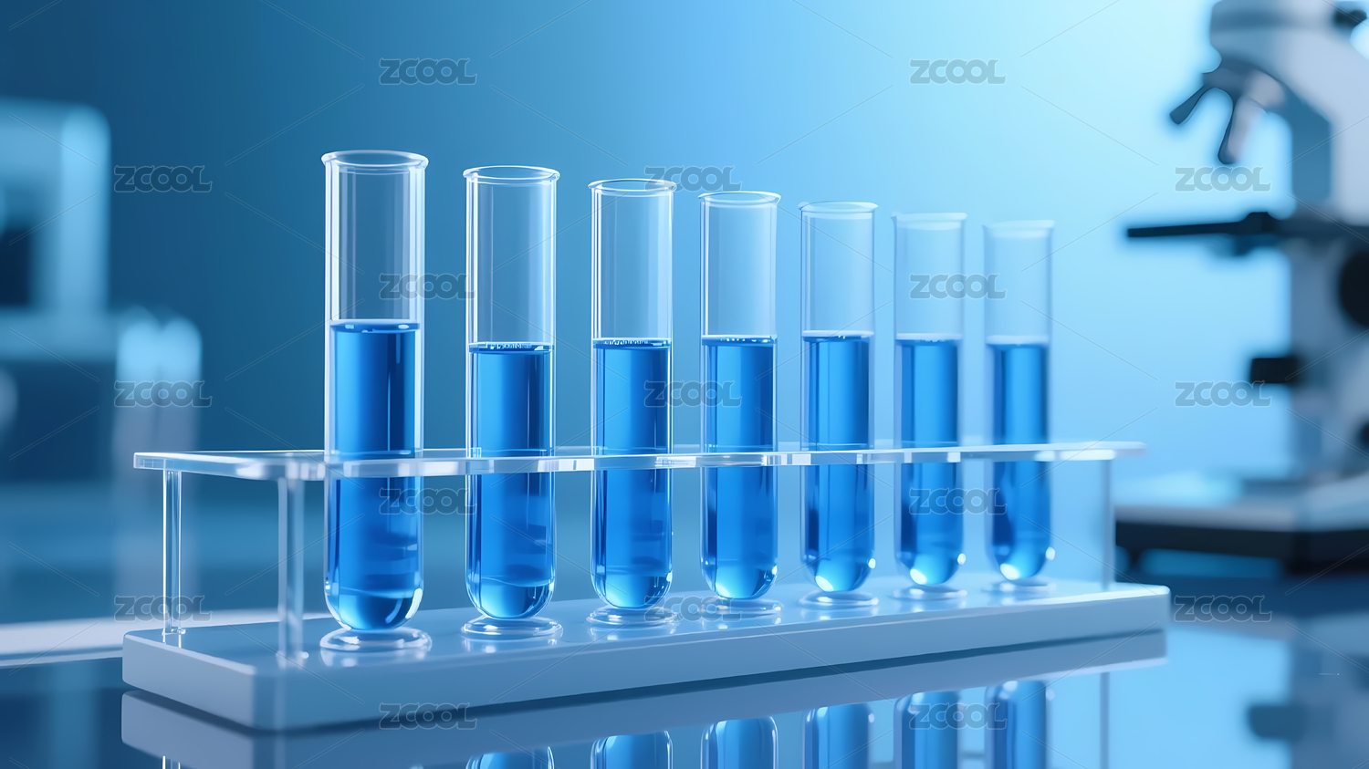 实验室里的烧杯和试管3D渲染医疗化学插图