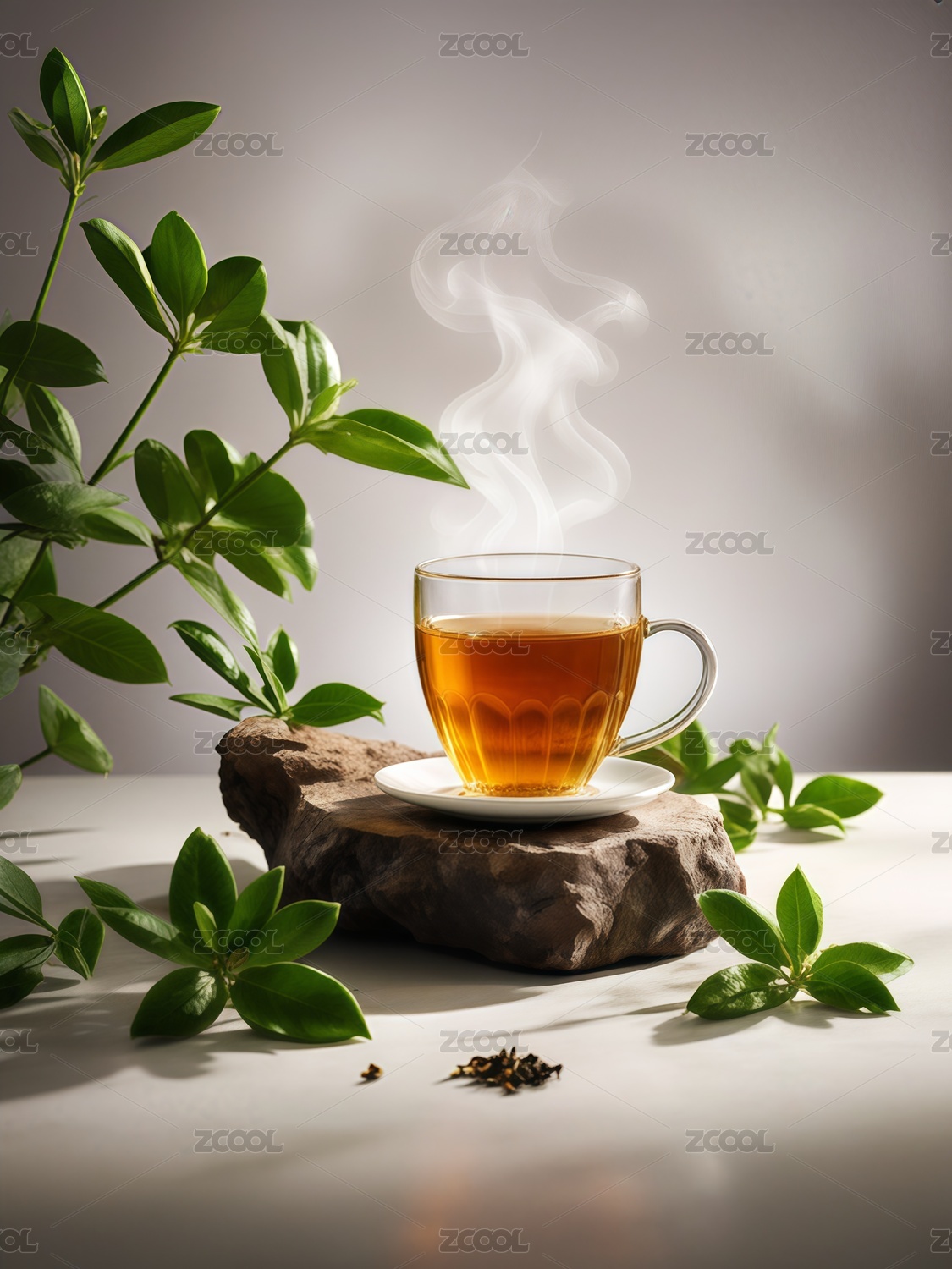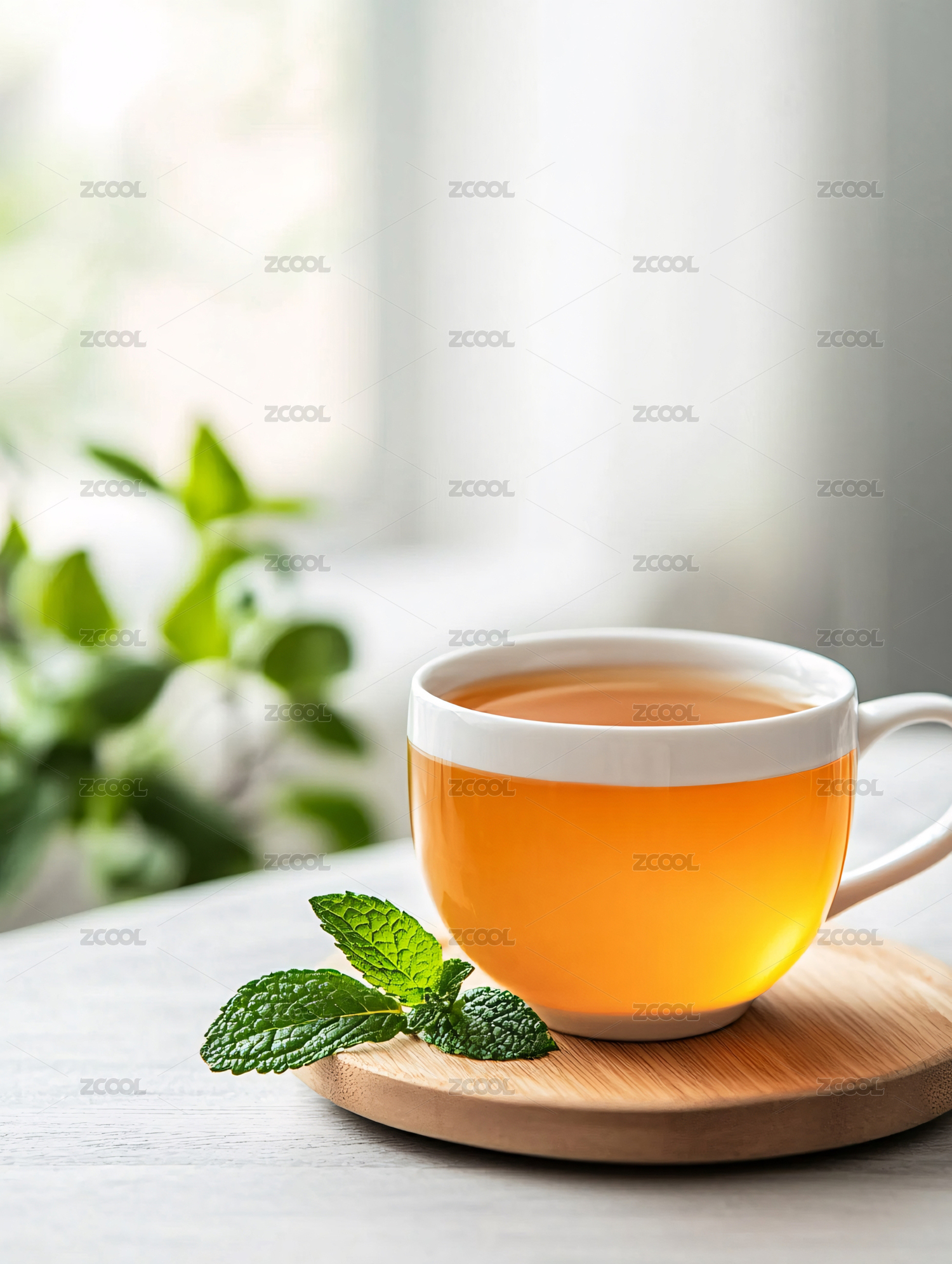 一杯清茶与绿叶