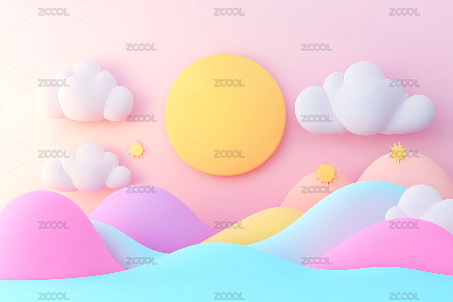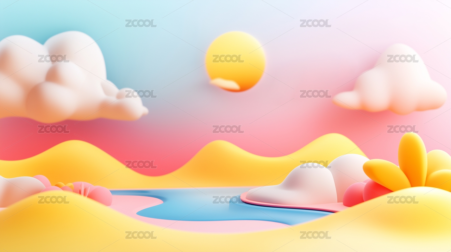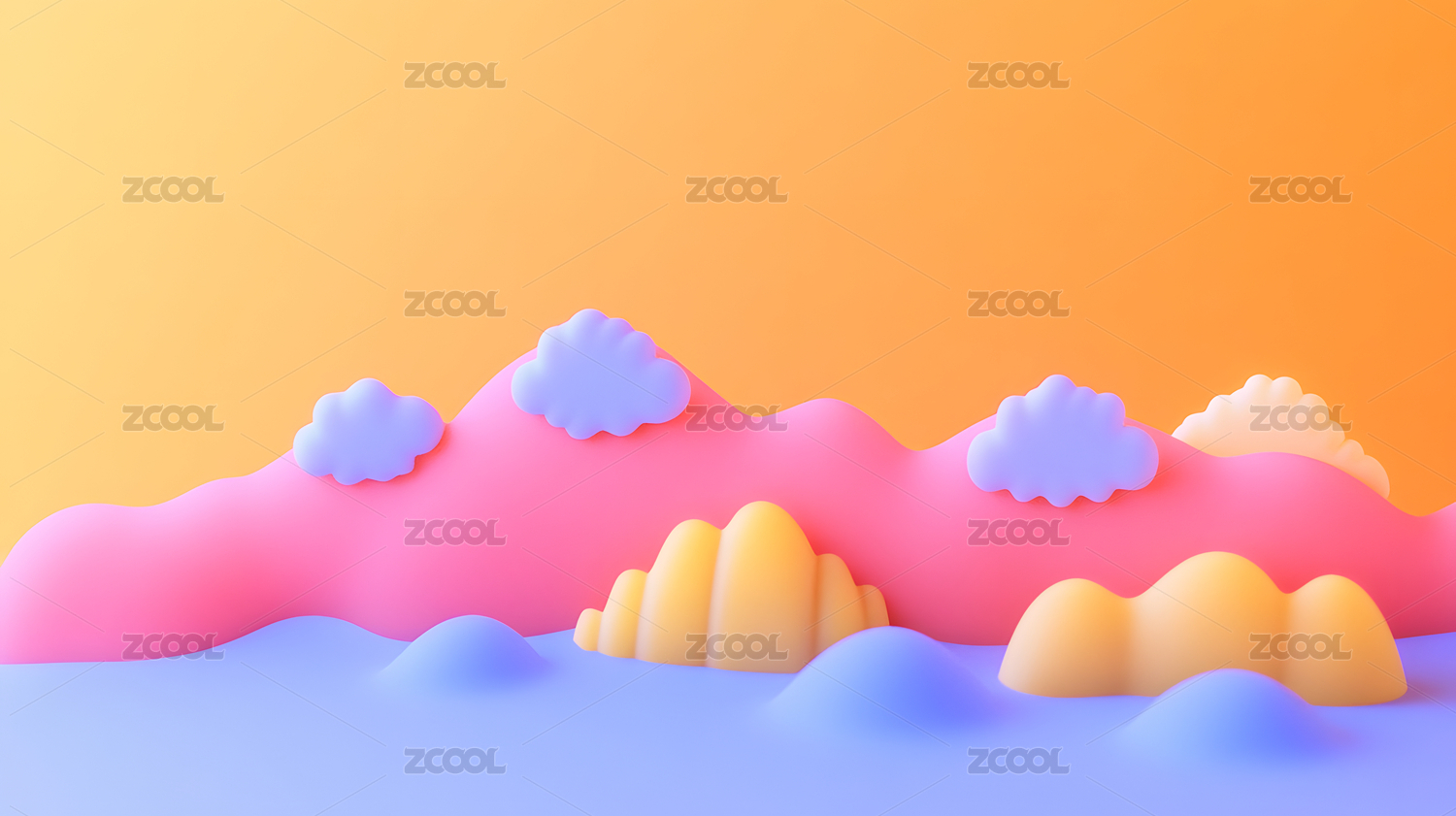 3d,立体,可爱,卡通,温柔,柔和,彩色,风景,山峰,景观