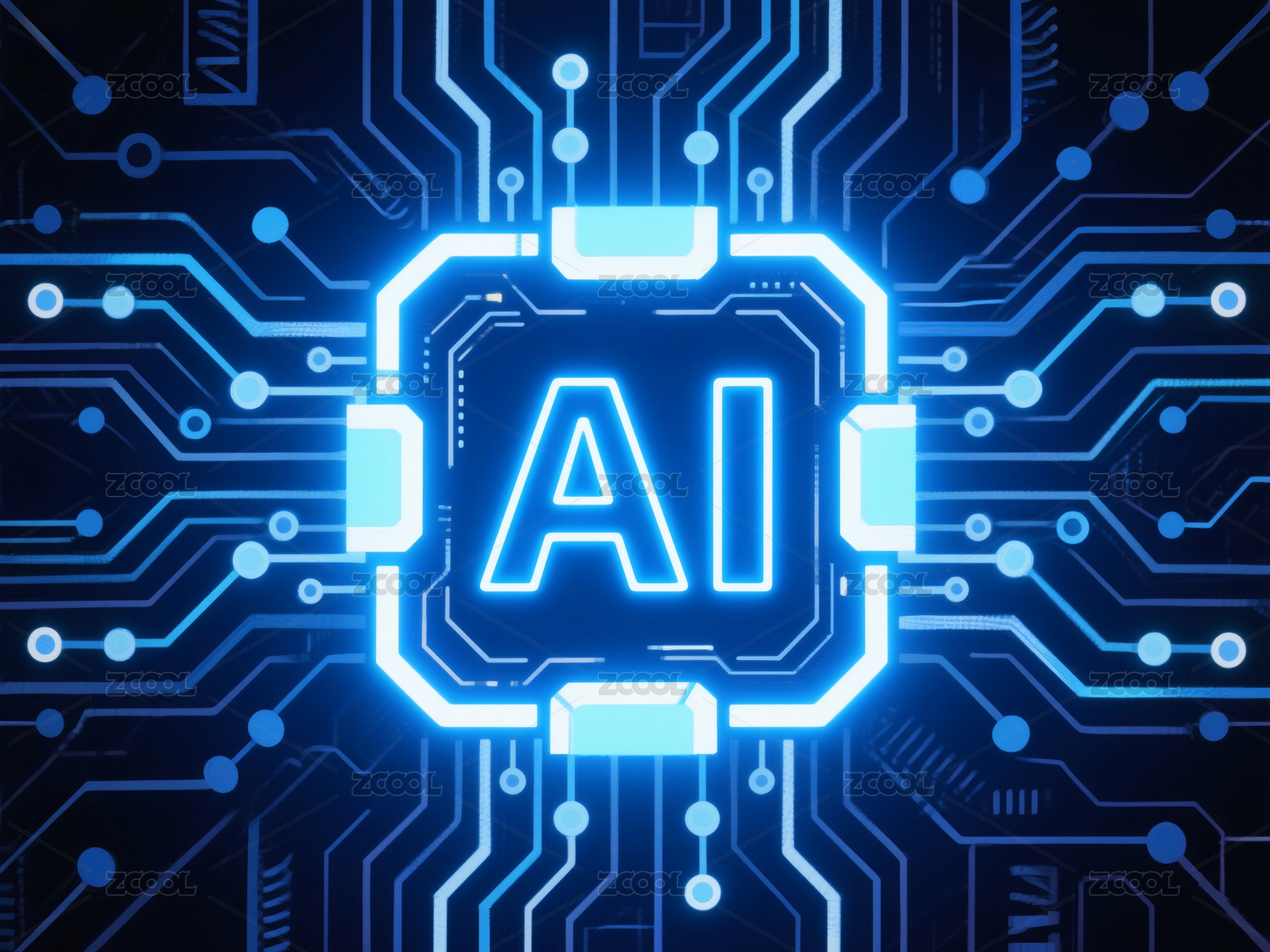 蓝色电路板上的AI标识