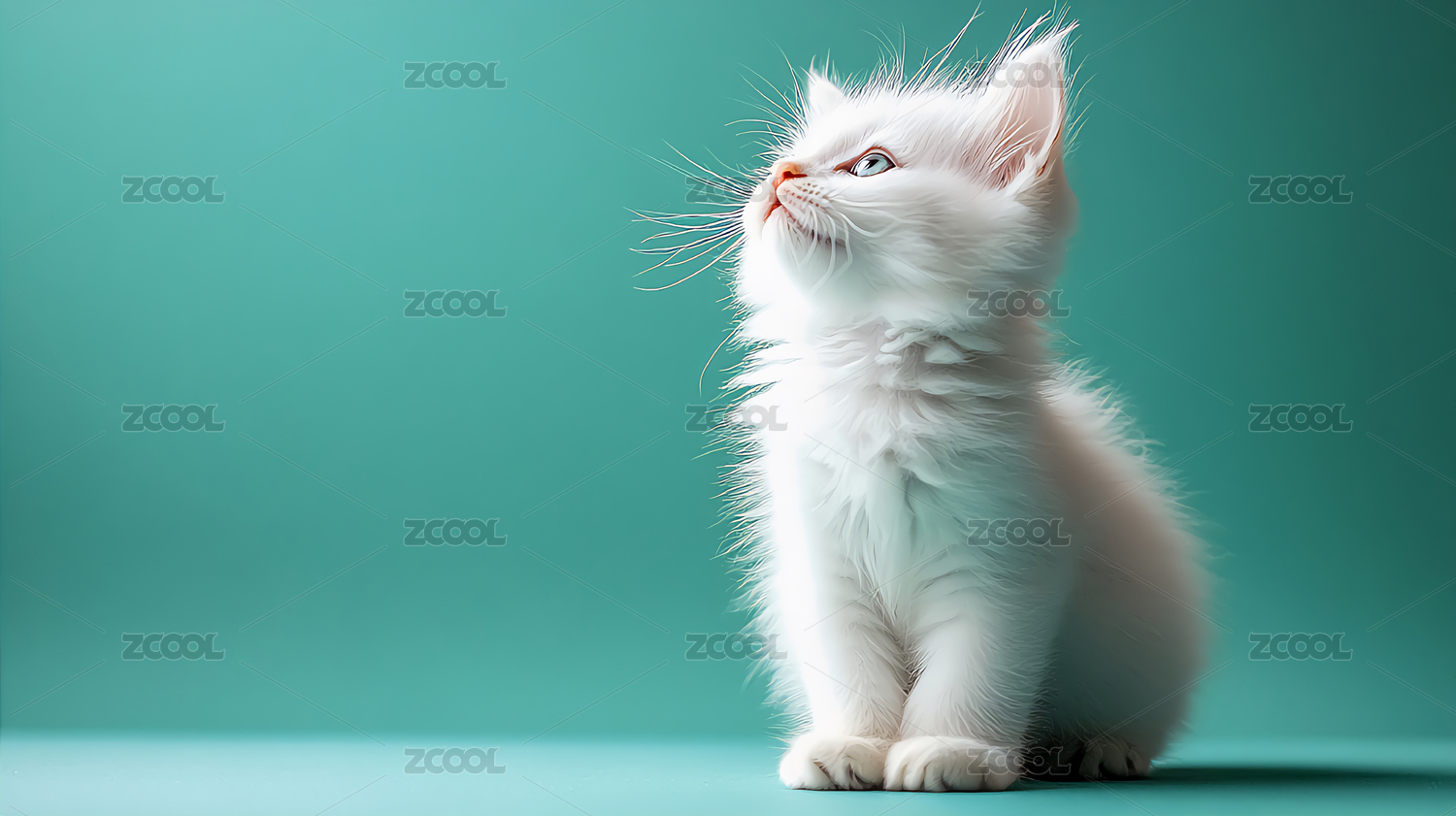 蓝色背景上着一只小猫图片