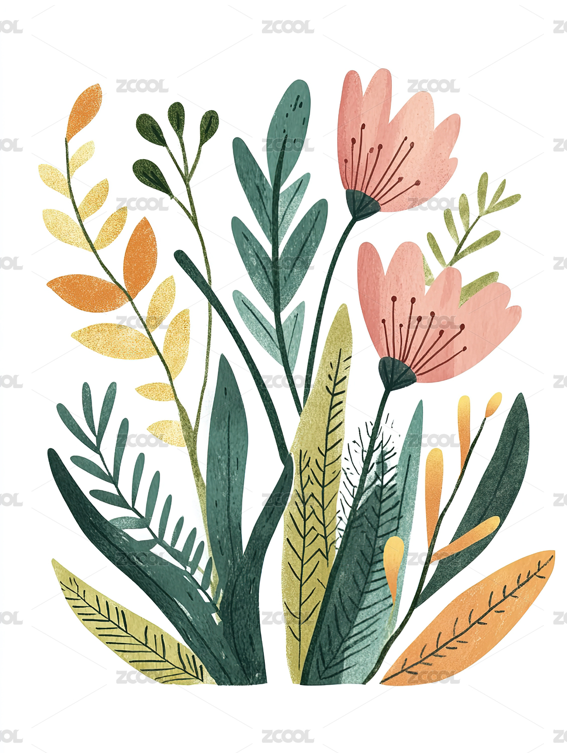 植物,扁平风,肌理风,花朵,鲜花,手捧花,花束,叶子