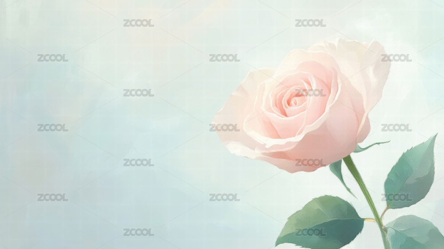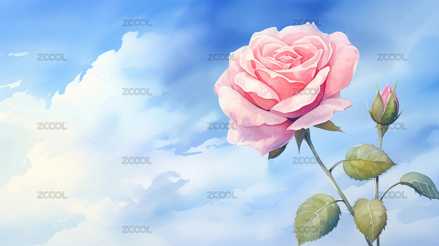 手绘卡通蓝天下的玫瑰花水彩插画素材