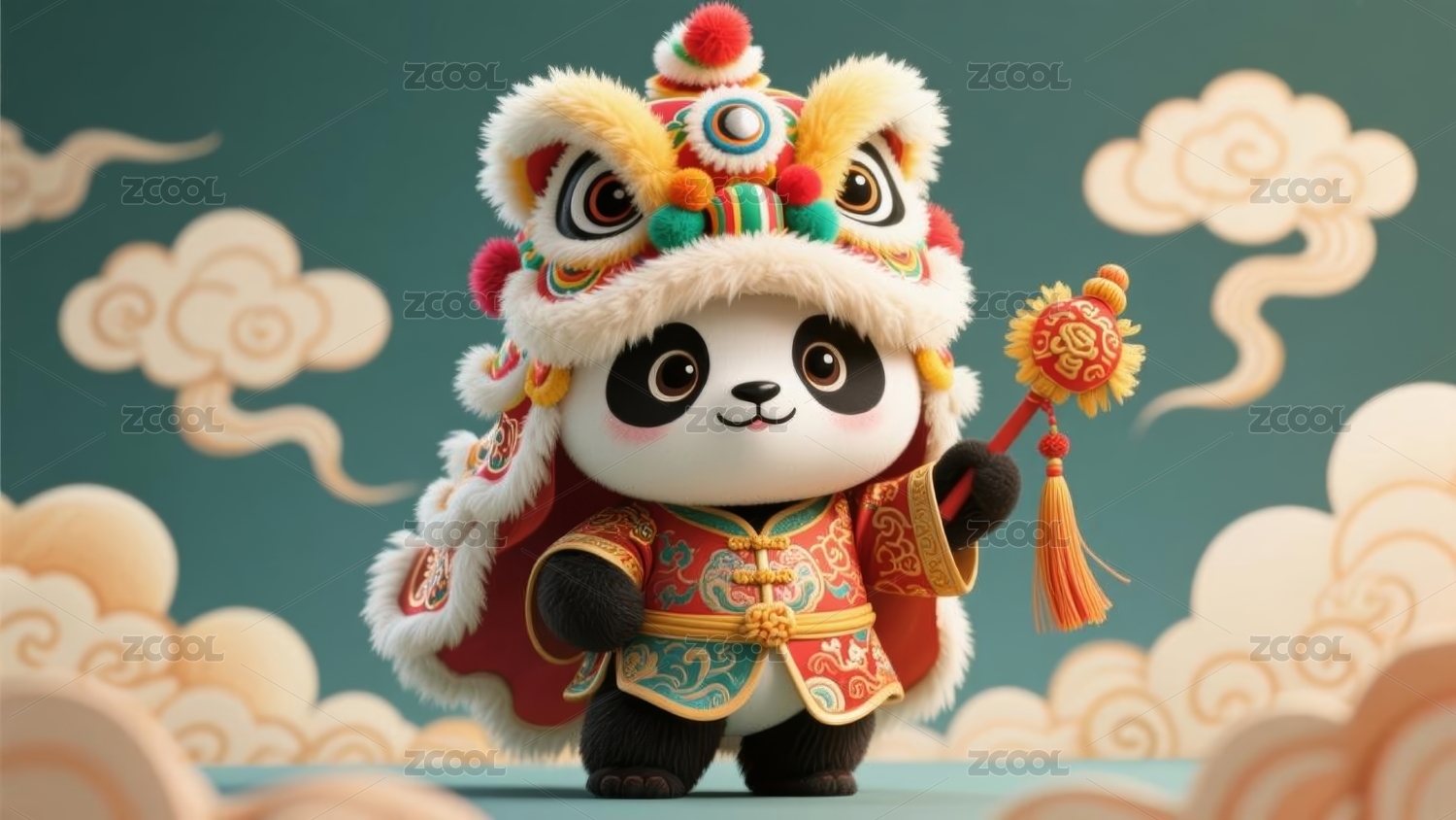 背景,艺术,红色,卡通,中国,传统,文化,可爱,动物,熊猫