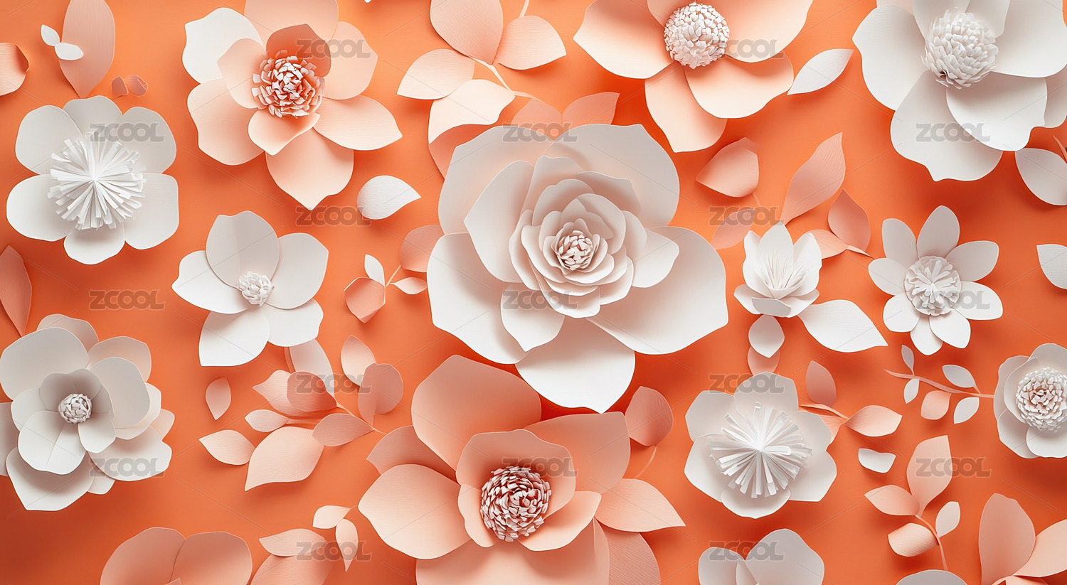 红色粉色边框鲜花花朵剪纸背景壁纸