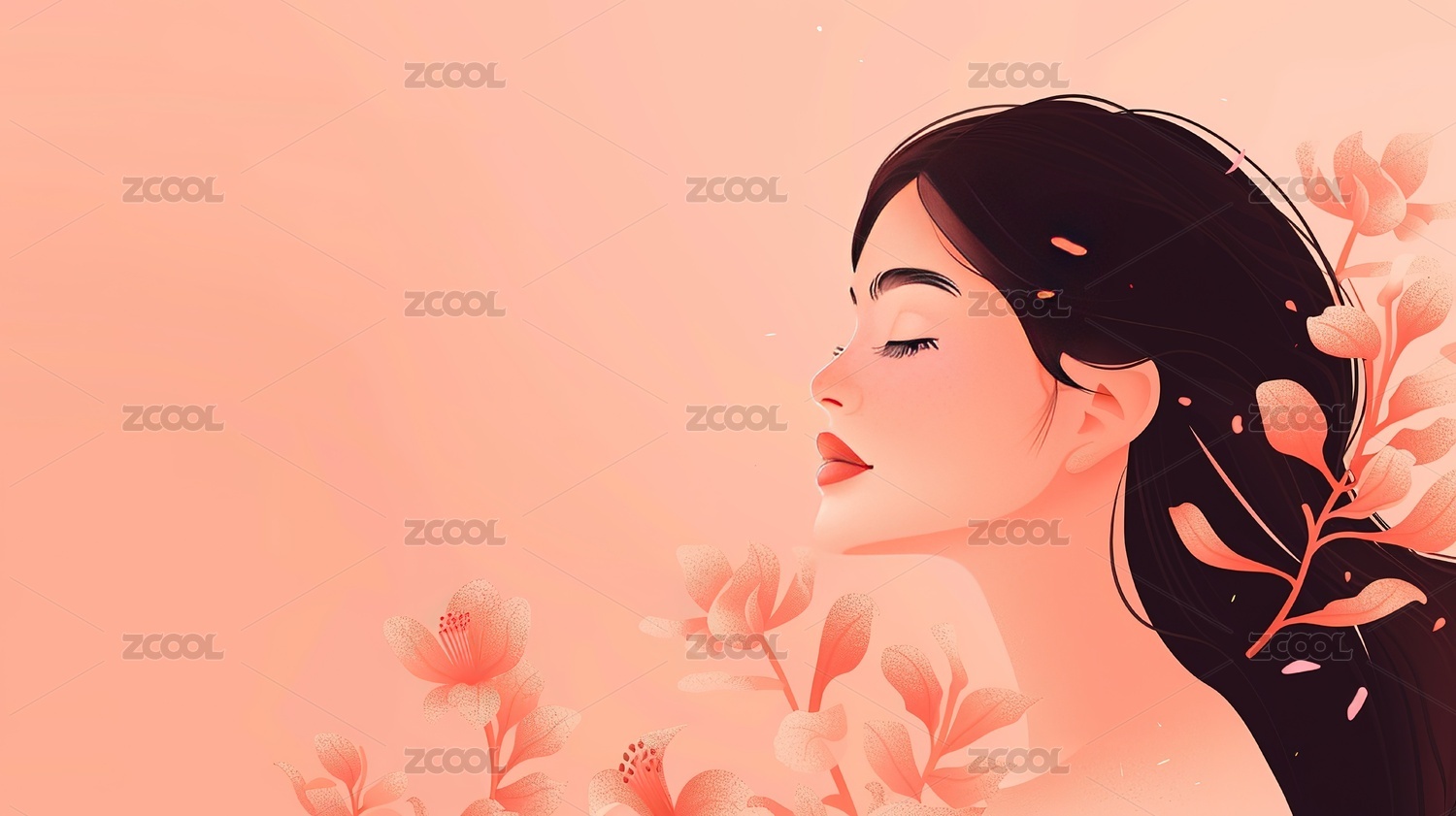 温柔粉色长发女性扁平风节日海报插画背景
