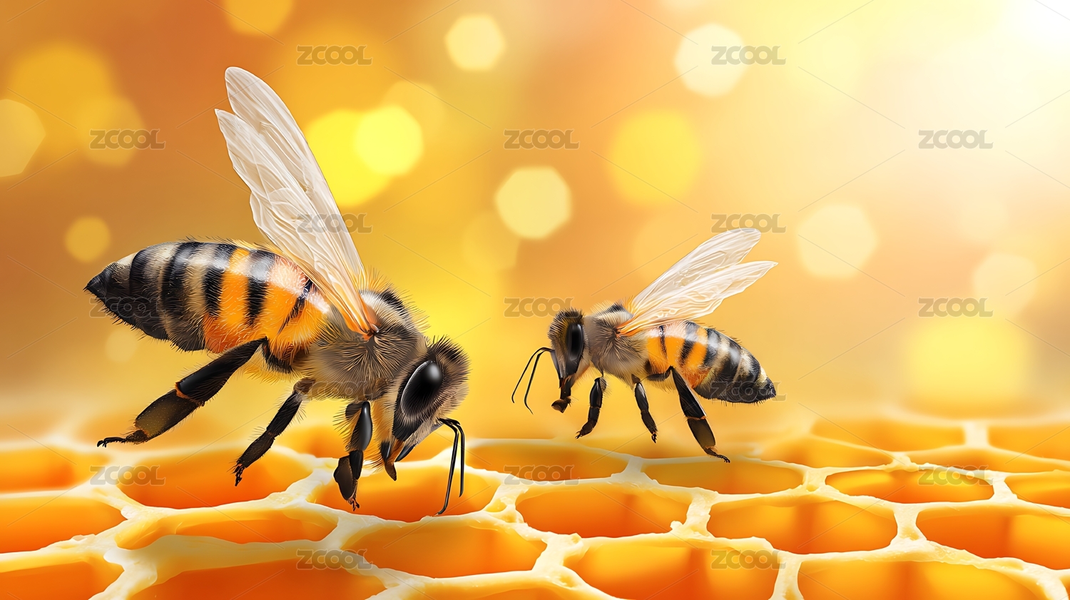 空中飞舞的蜜蜂和蜂蜜蜂巢