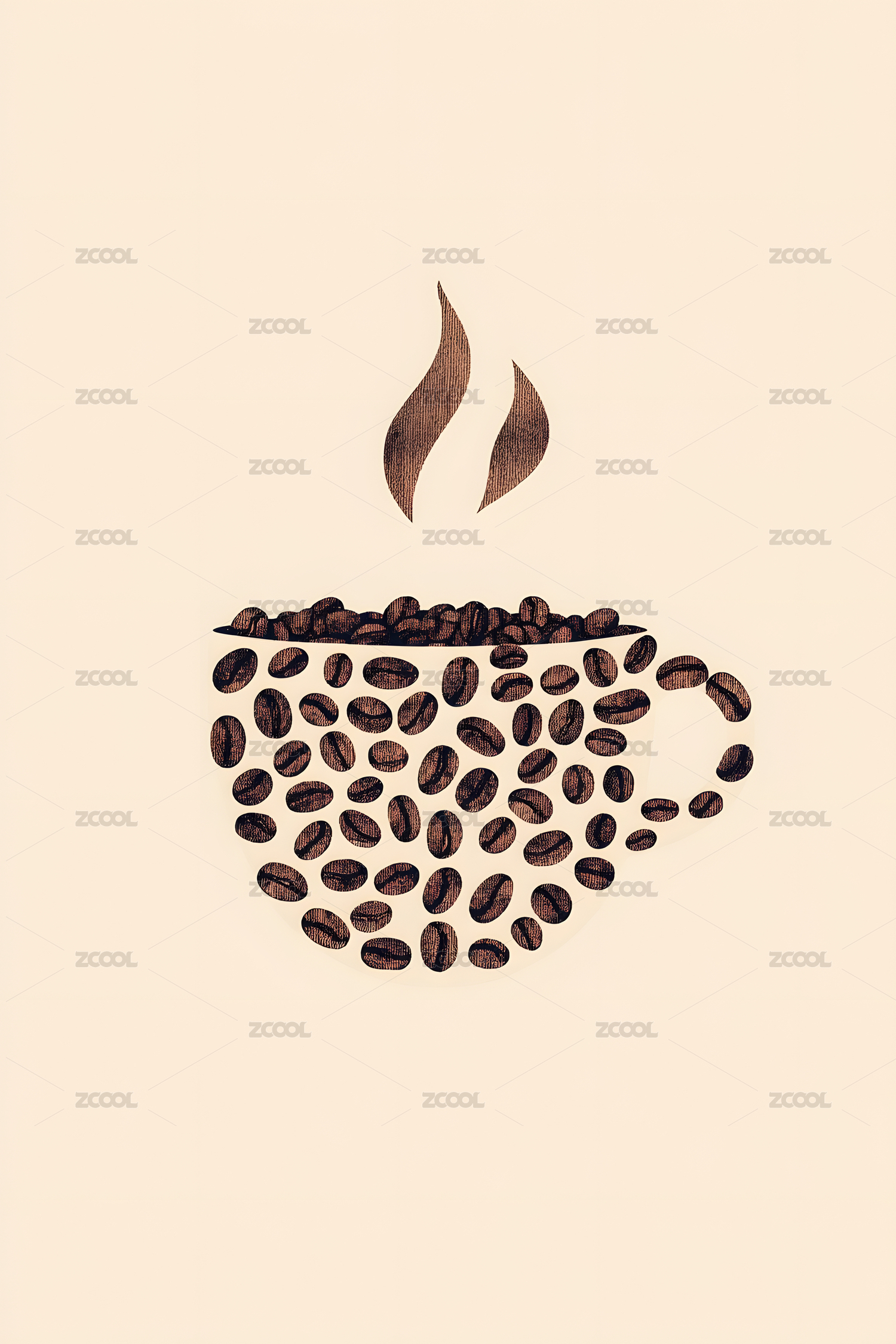 咖啡,杯子,豆子,艺术,创意,饮品,色彩,插画,设计,现代