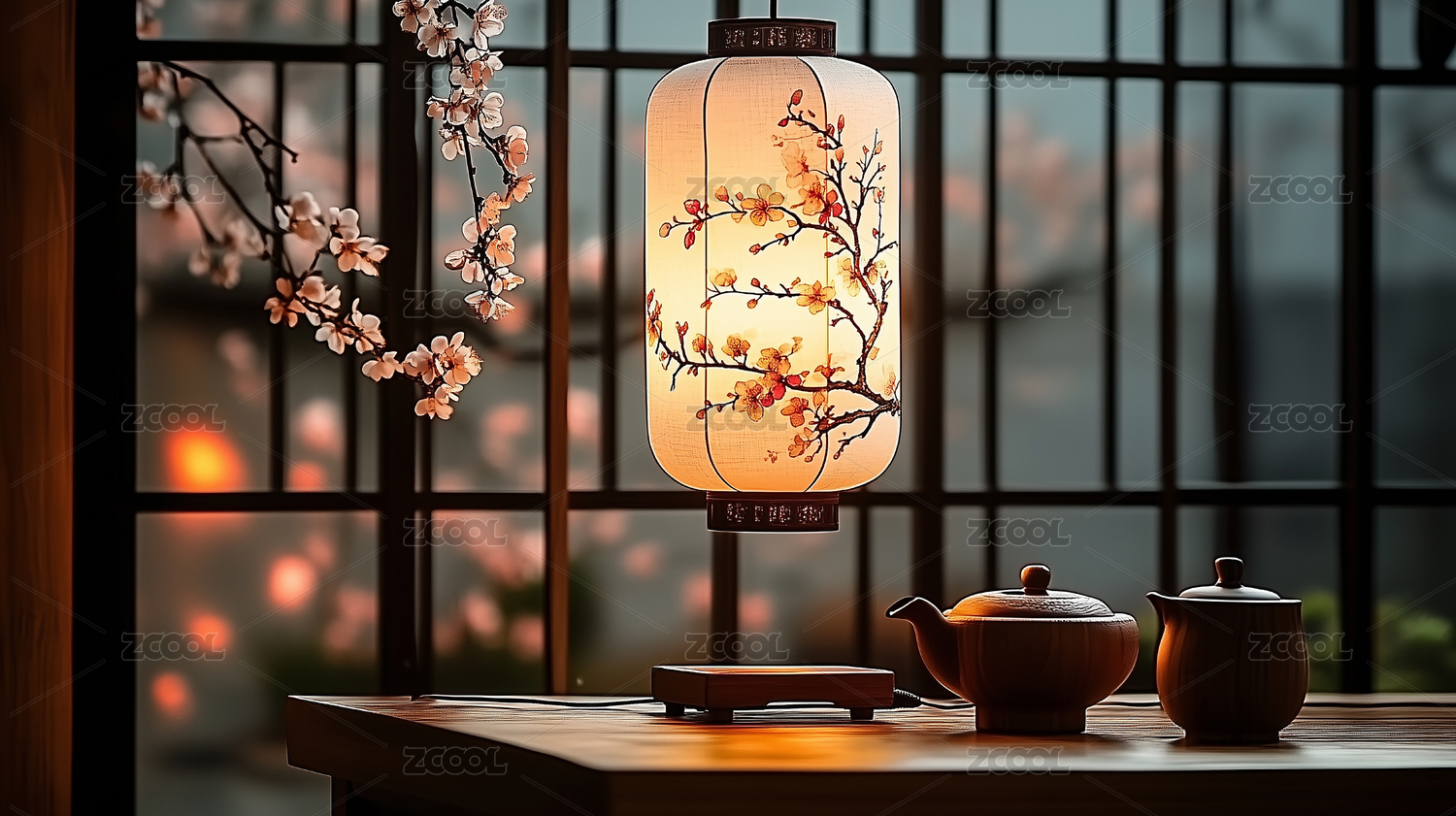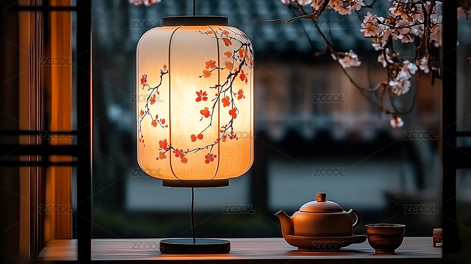 中式,背景,海报,壁纸,艺术,设计,灯光,灯笼,植物,茶壶