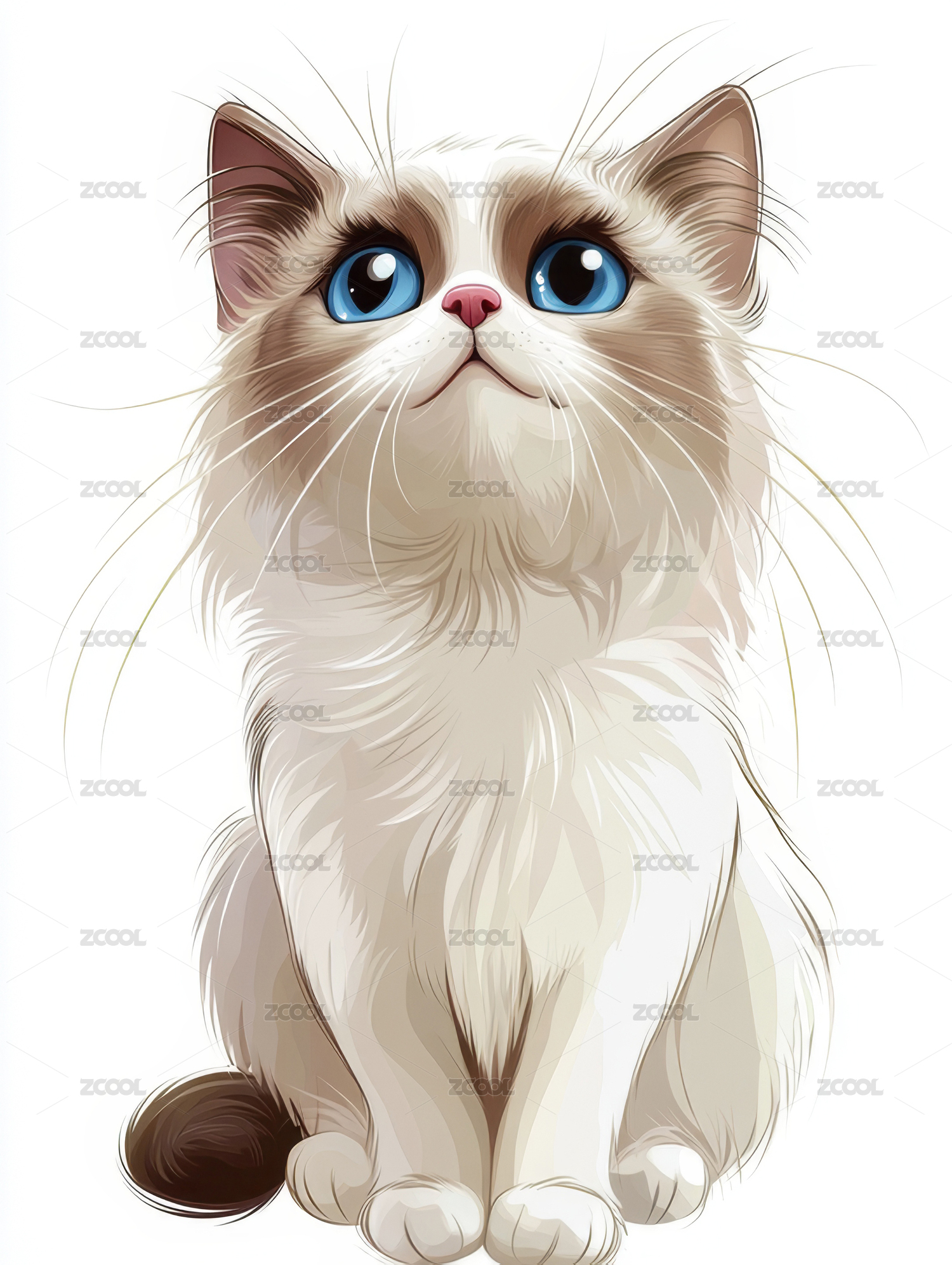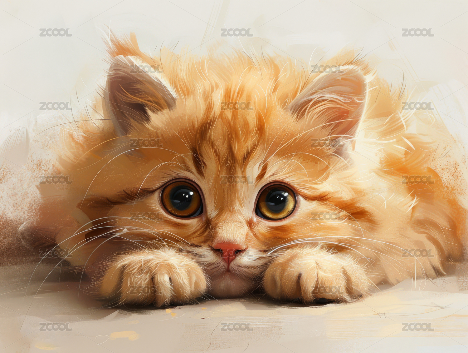 手绘写实插画动物猫