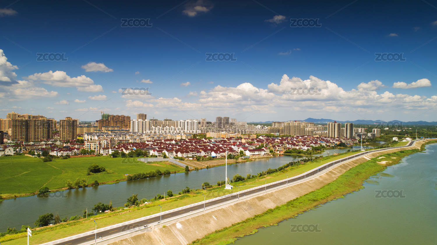 鸟瞰安徽省郎溪县城,蓝天白云生态美