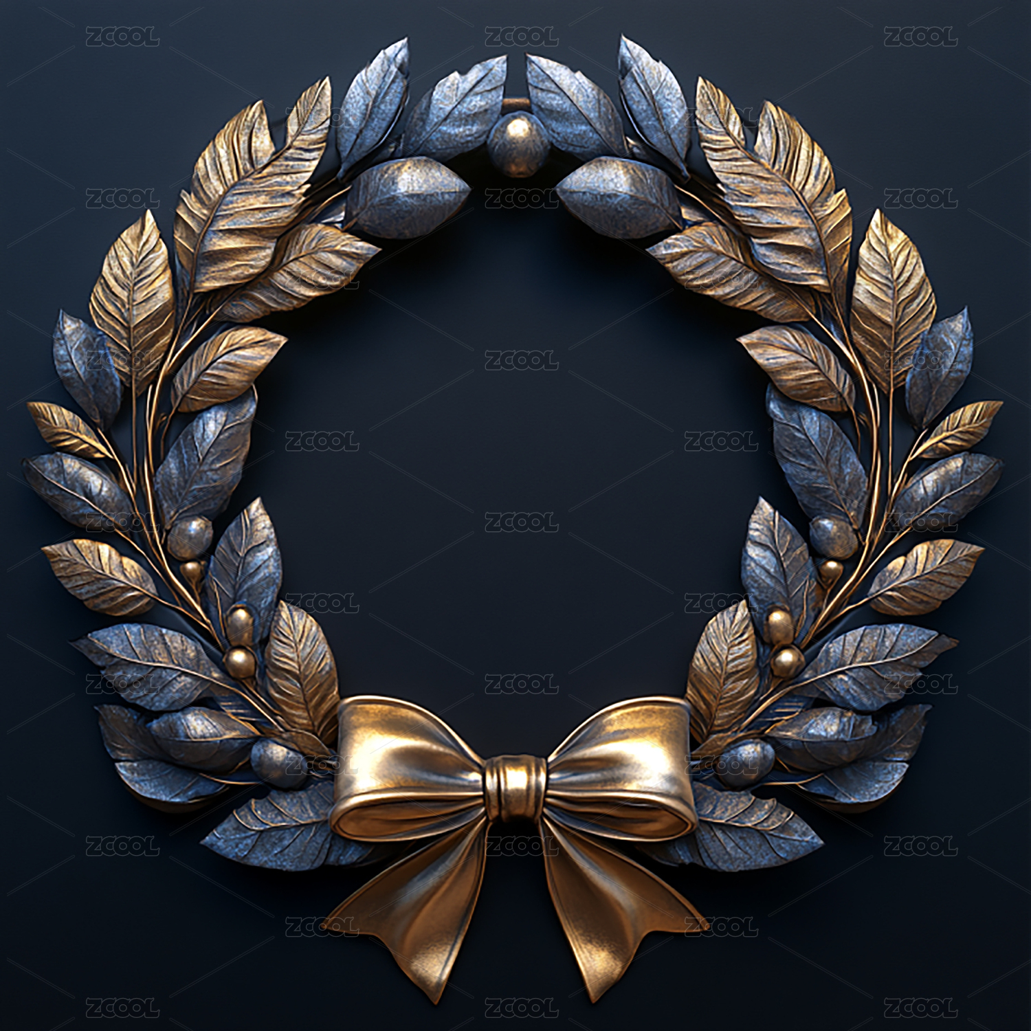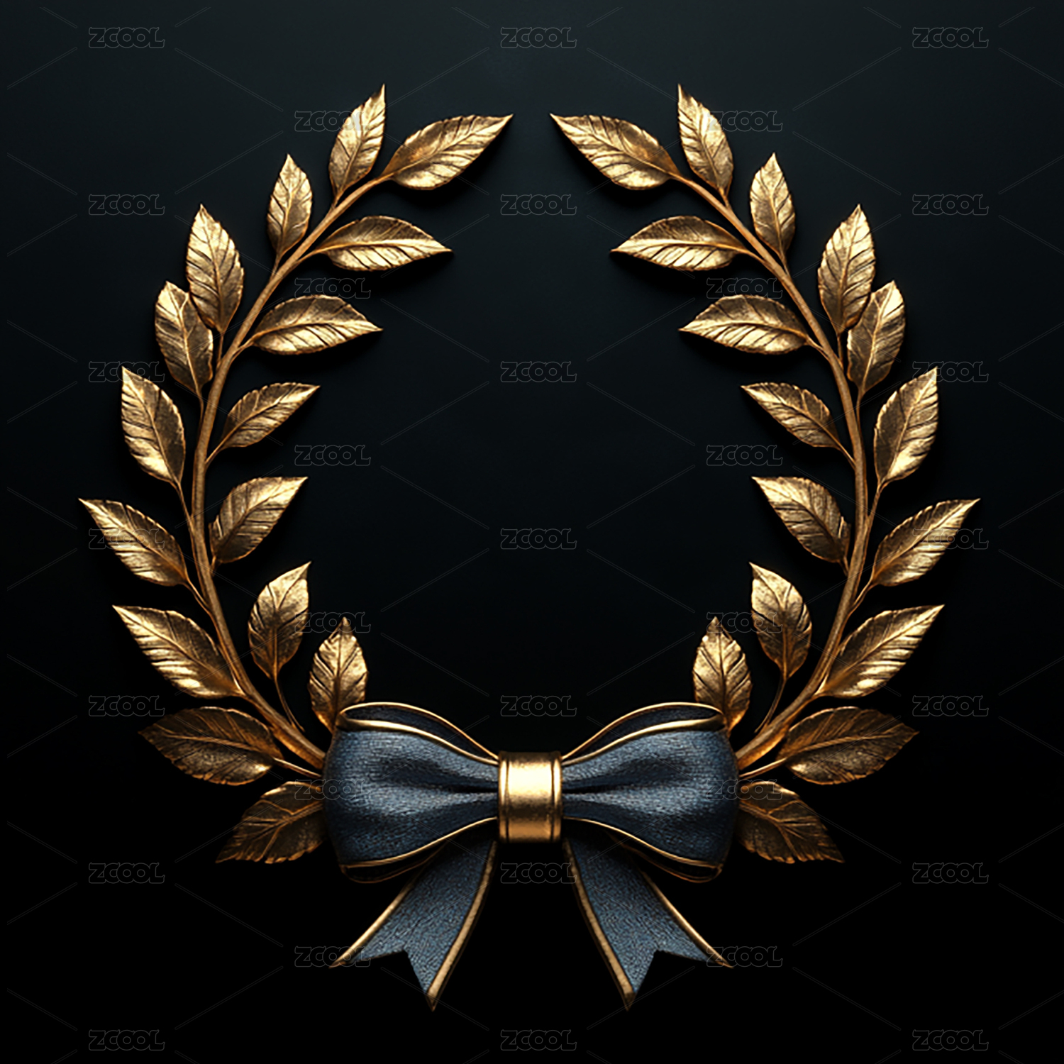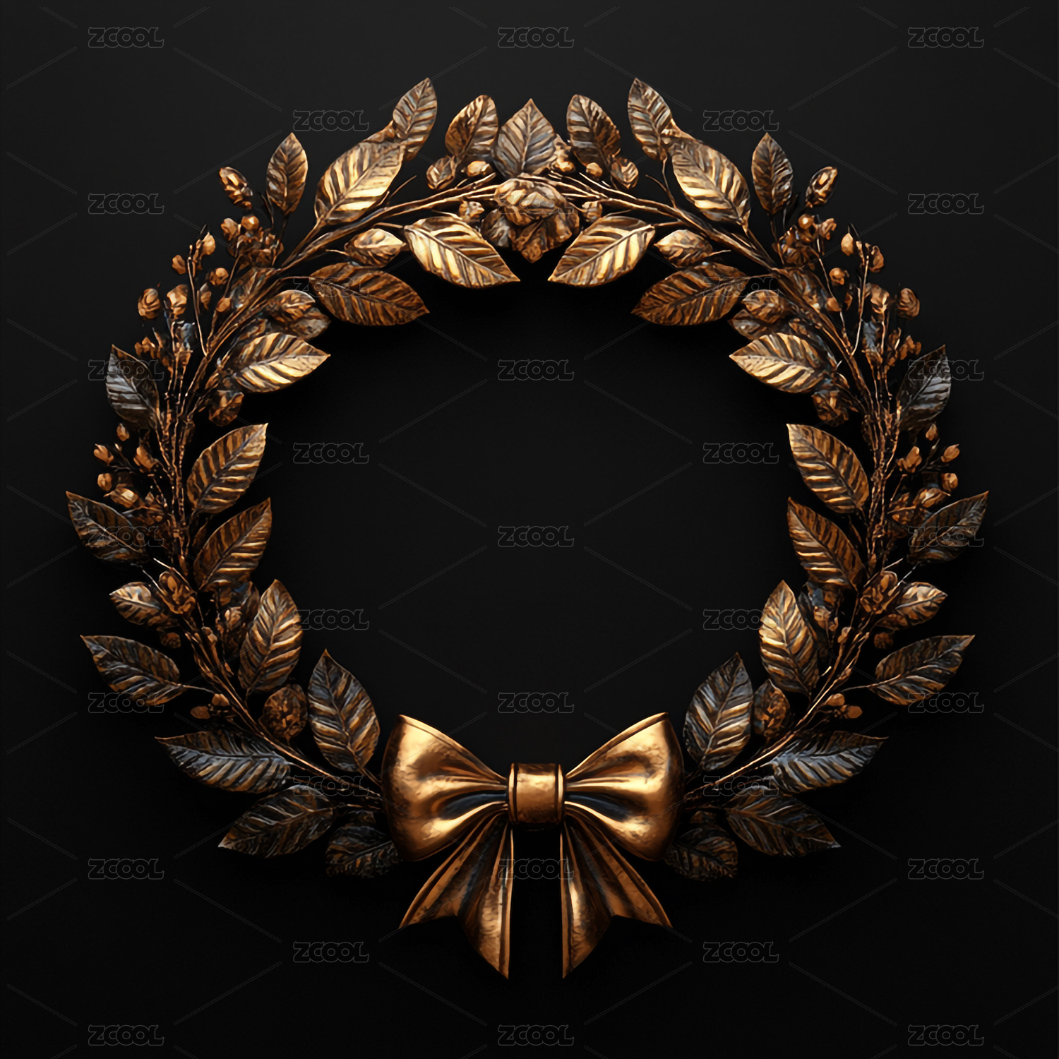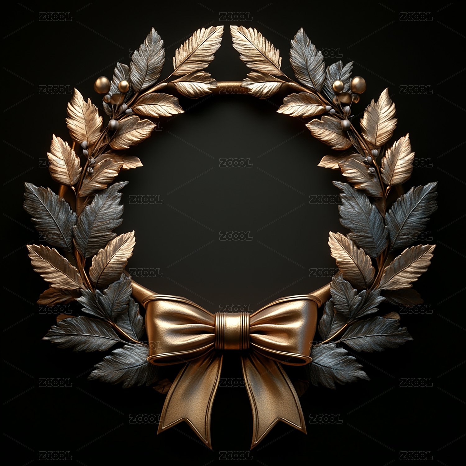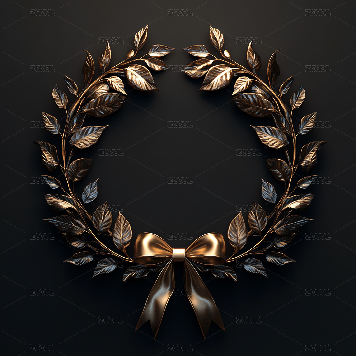 金色,月桂,花环,蝴蝶结,3D,渲染,黑色,背景,游戏,资源