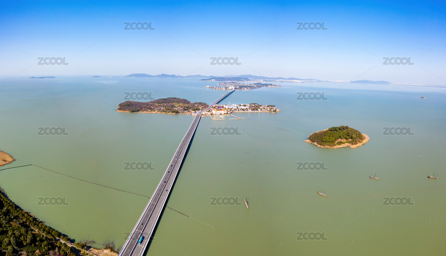 宁波宁海西店海上公路与城镇建筑航拍风景