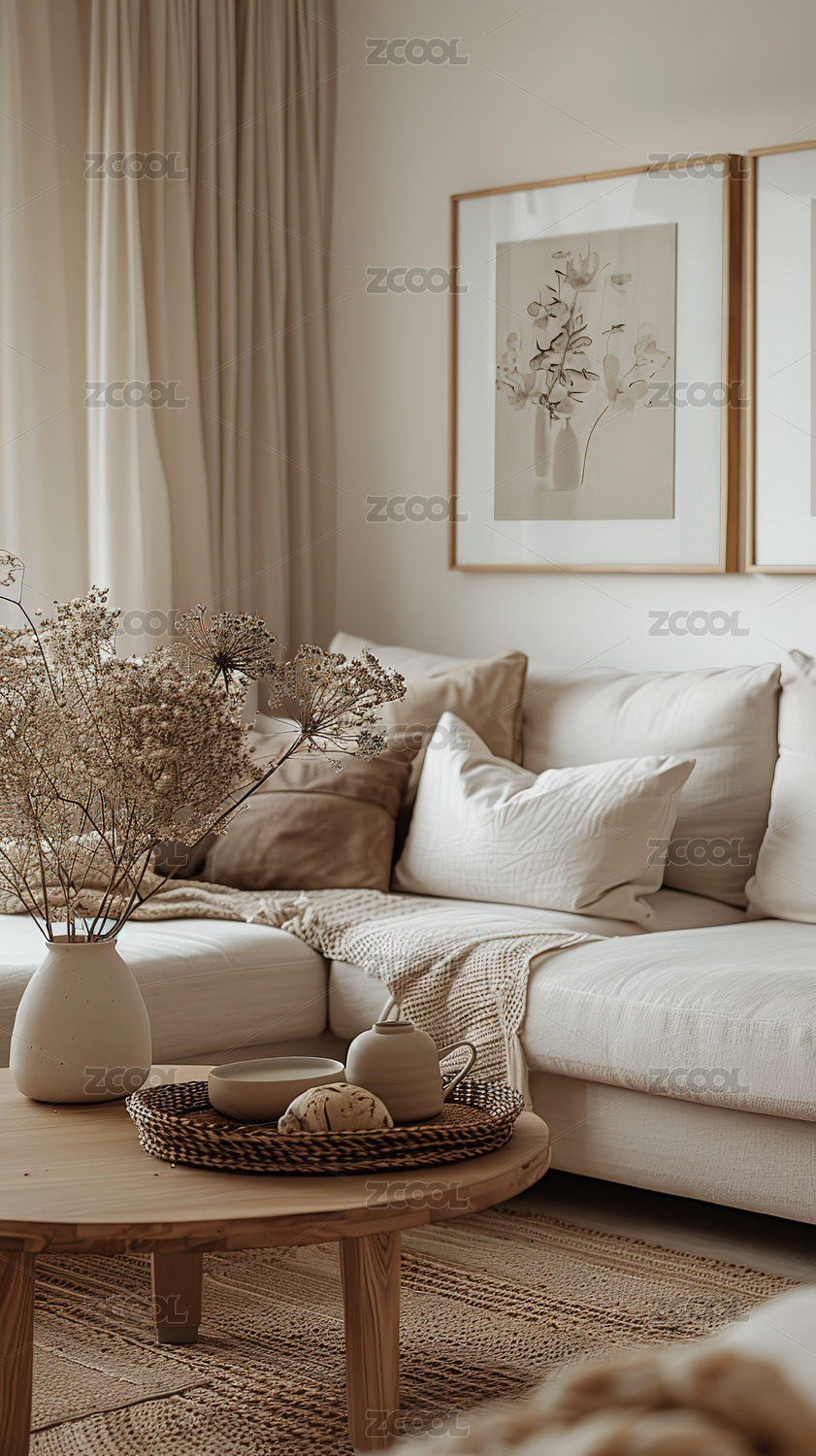 北欧明亮治愈极简风客厅起居室装饰装修场景