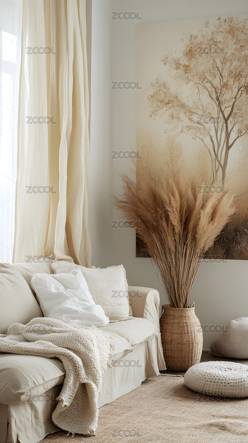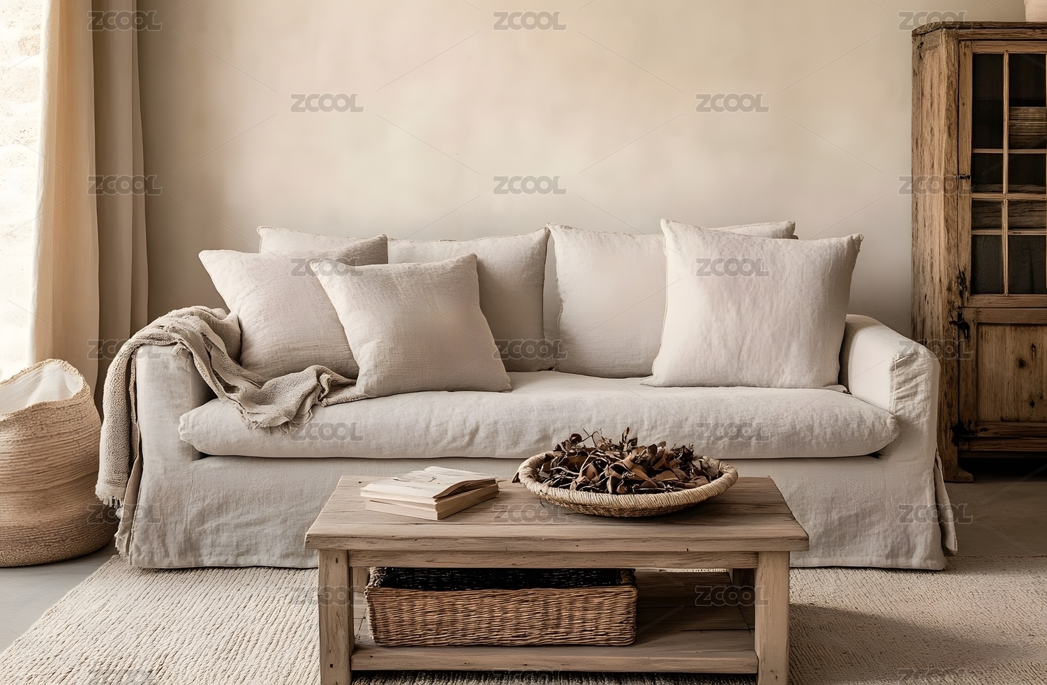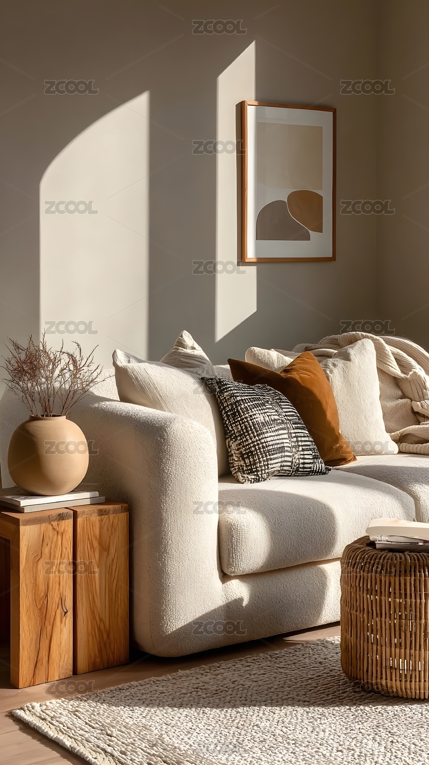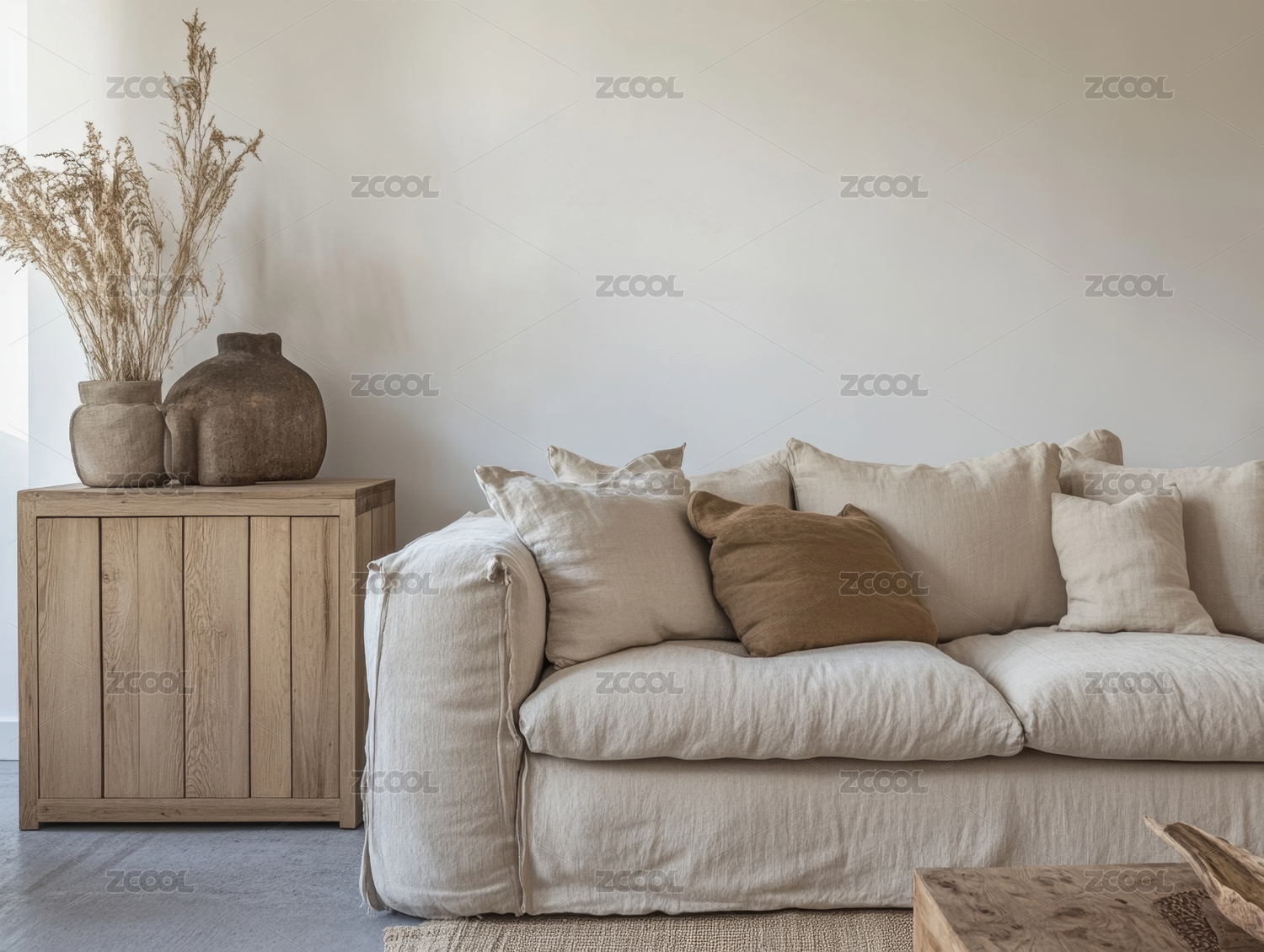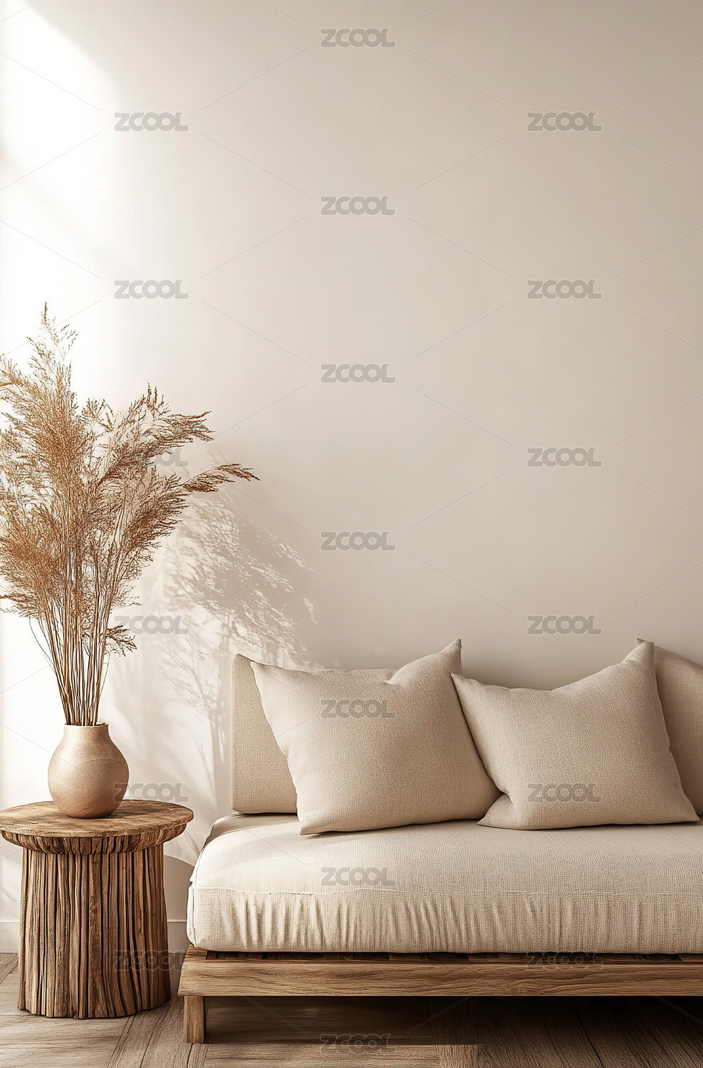 沙发,抱枕,木柜,花瓶,干花,简约,室内,设计,自然,光线