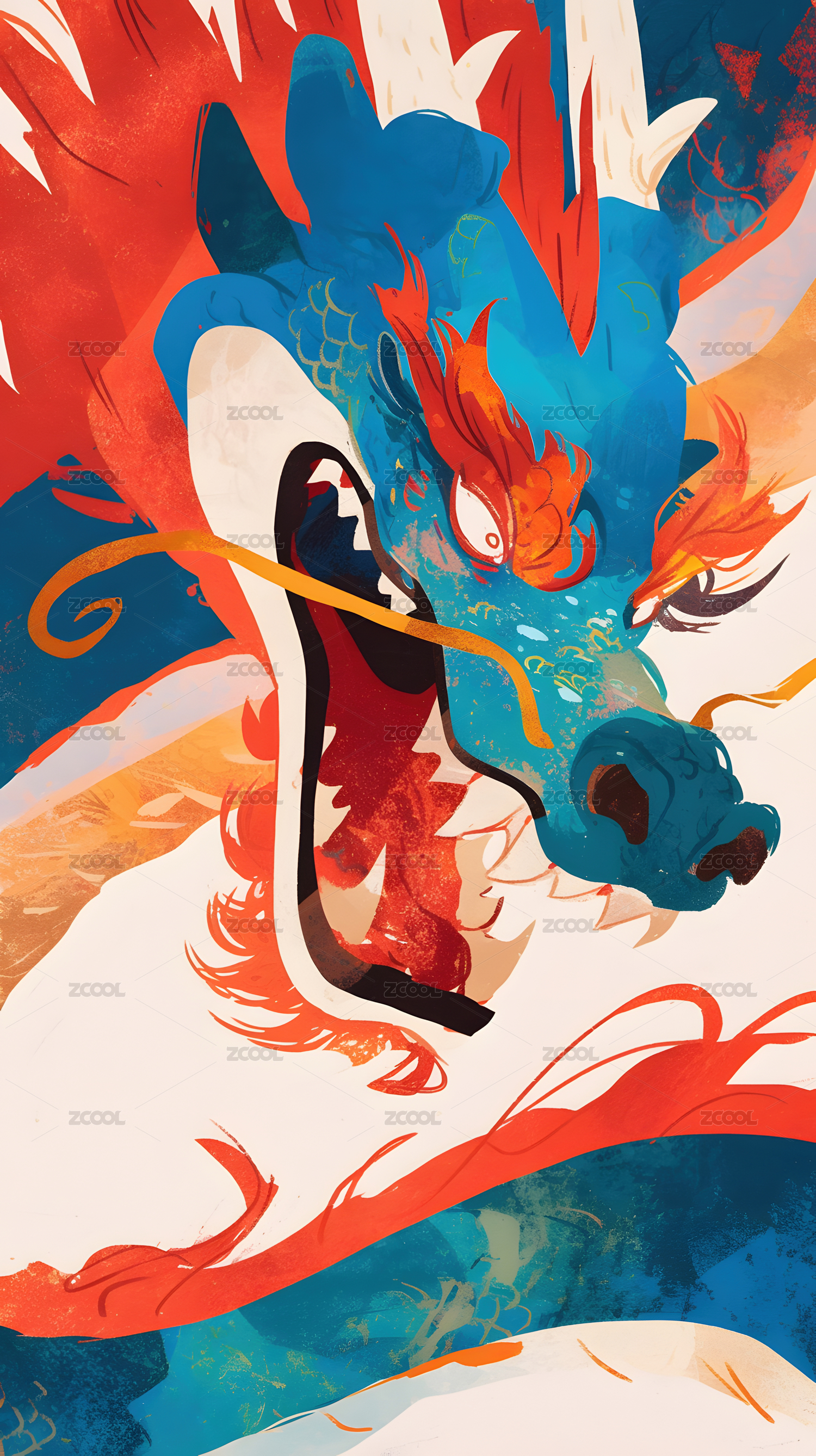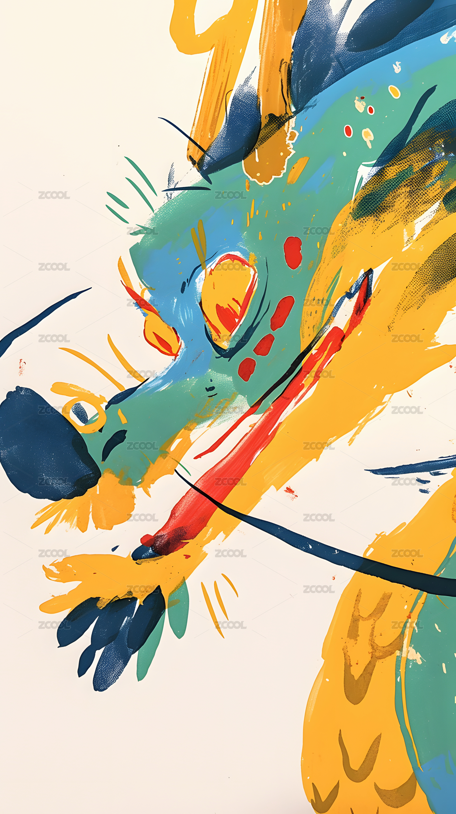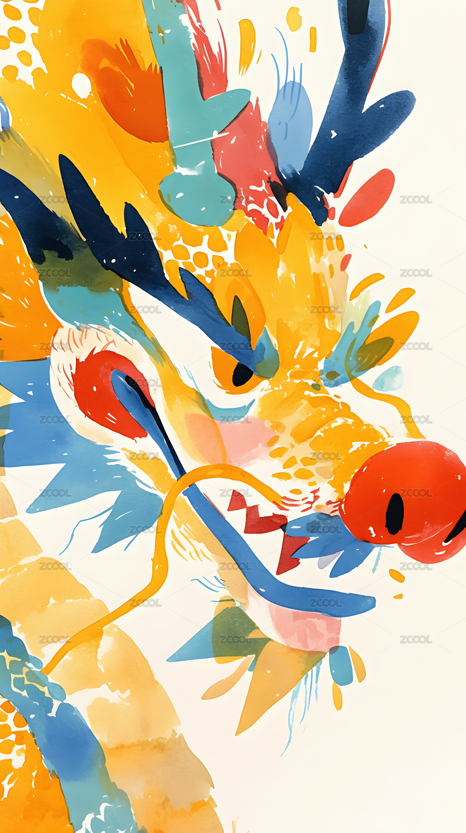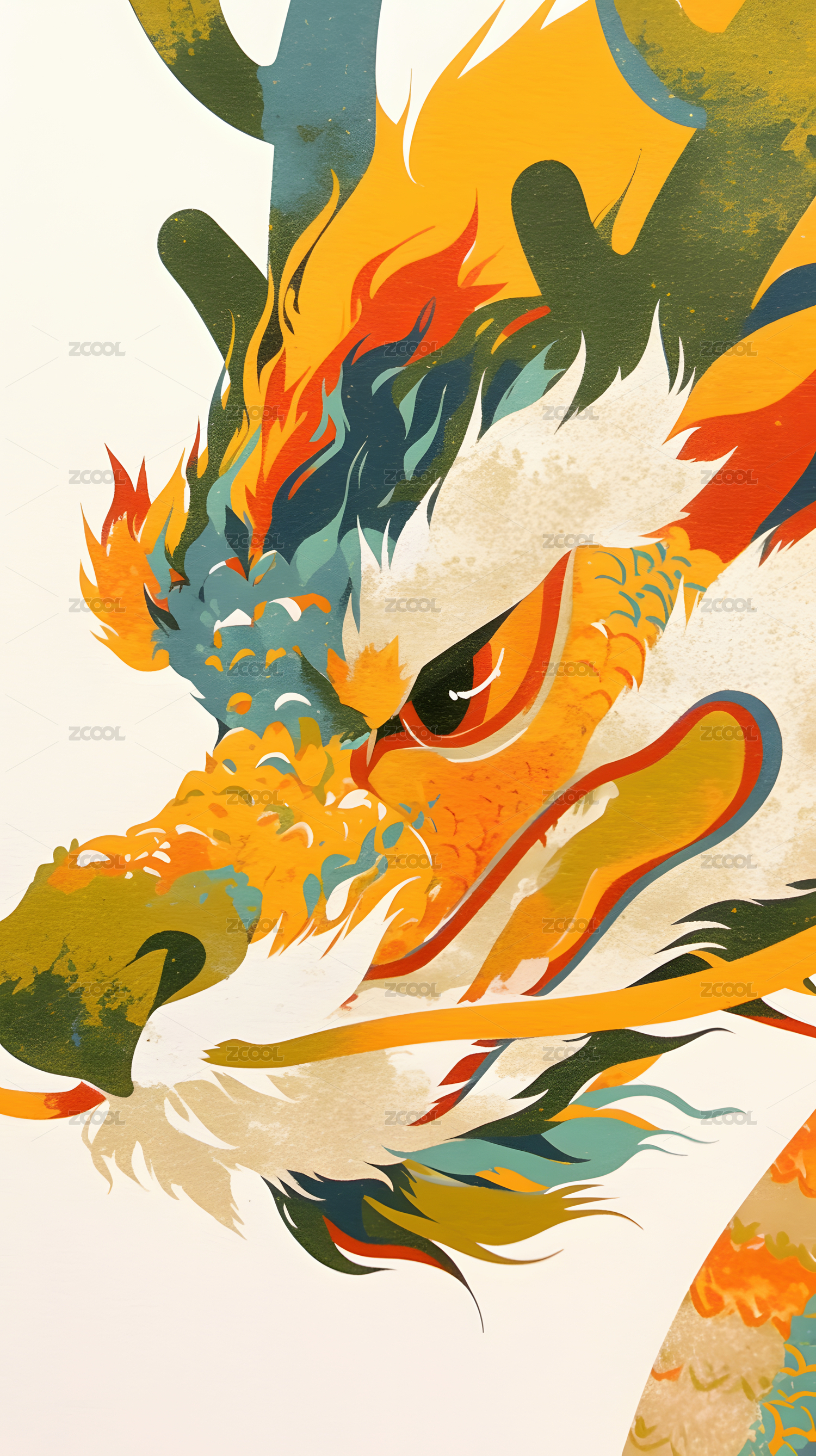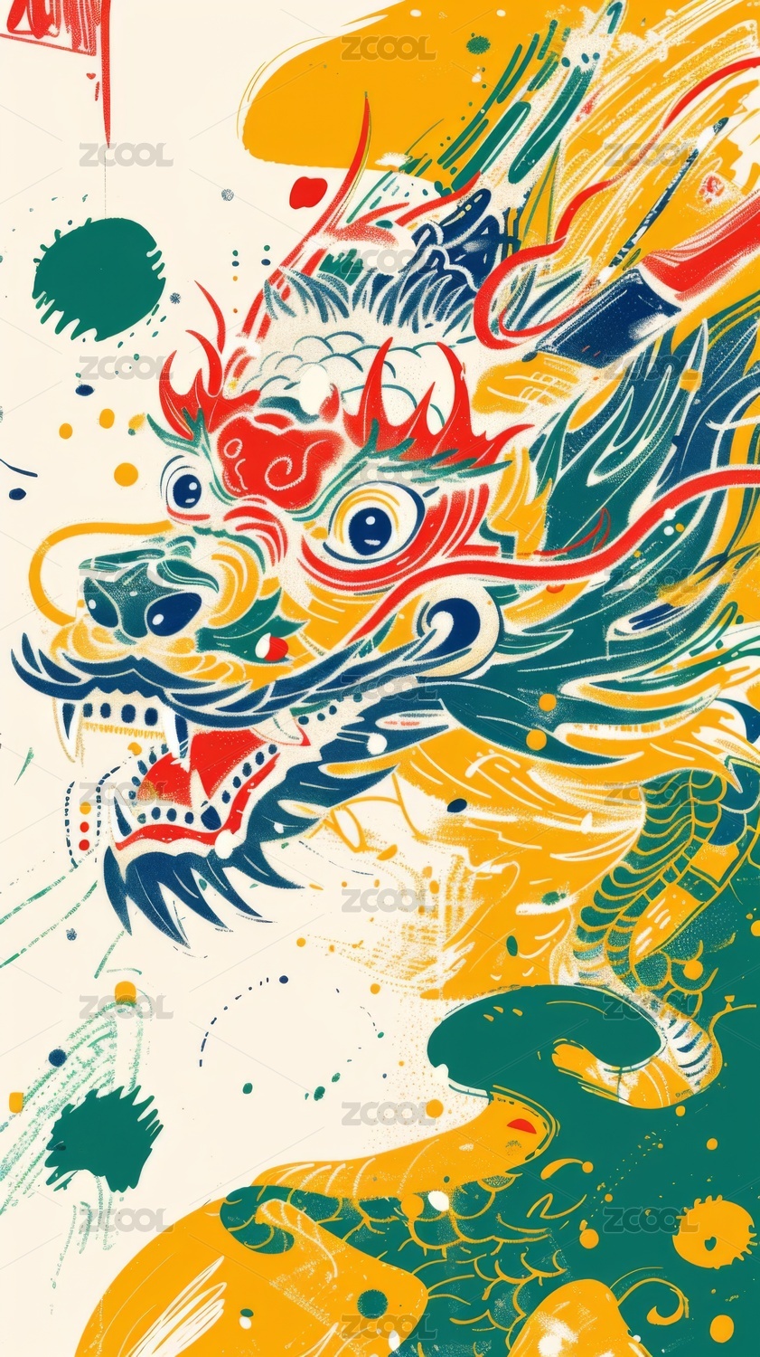 抽象,几何,彩色,色块,龙,动物,生肖,龙年,图案,插画