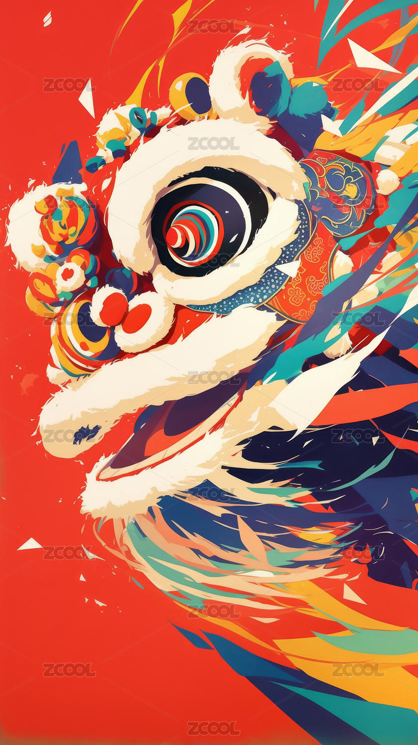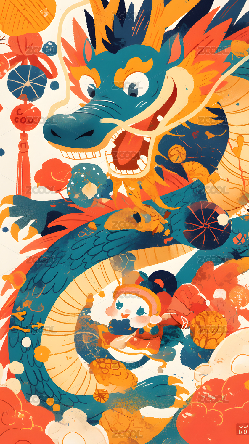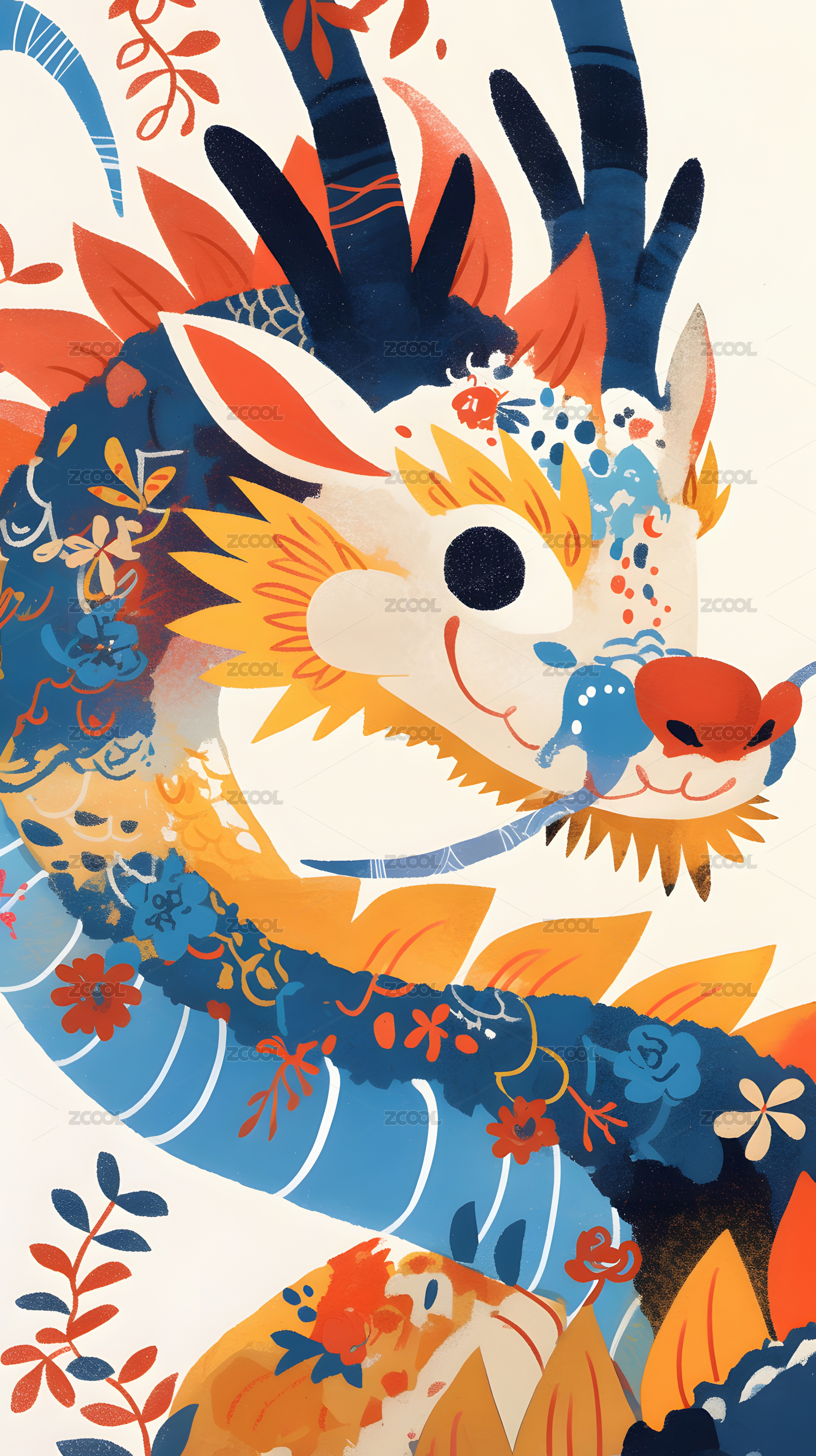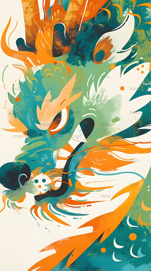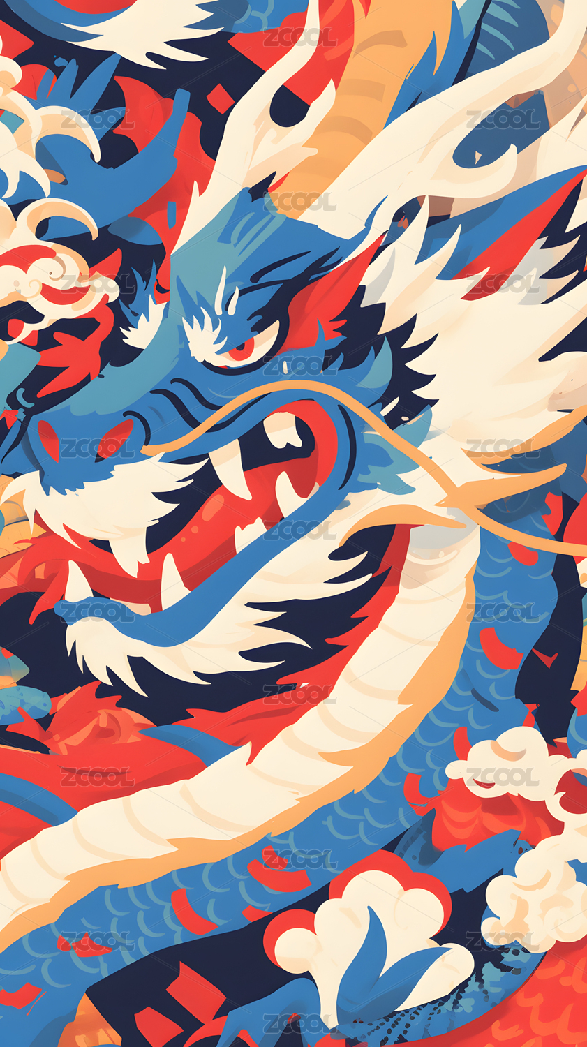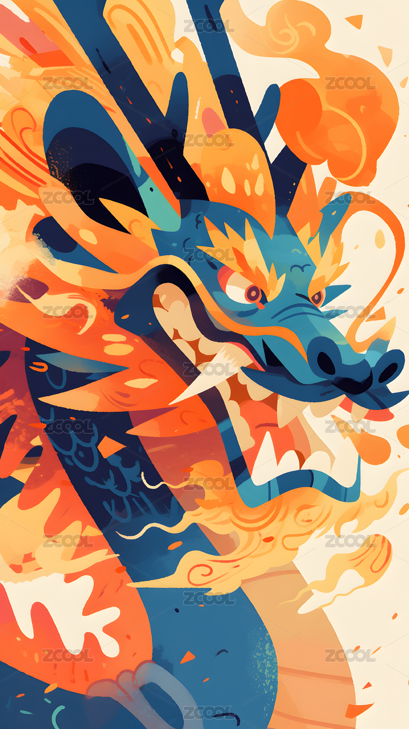 抽象,几何,彩色,色块,龙,动物,生肖,龙年,图案,插画
