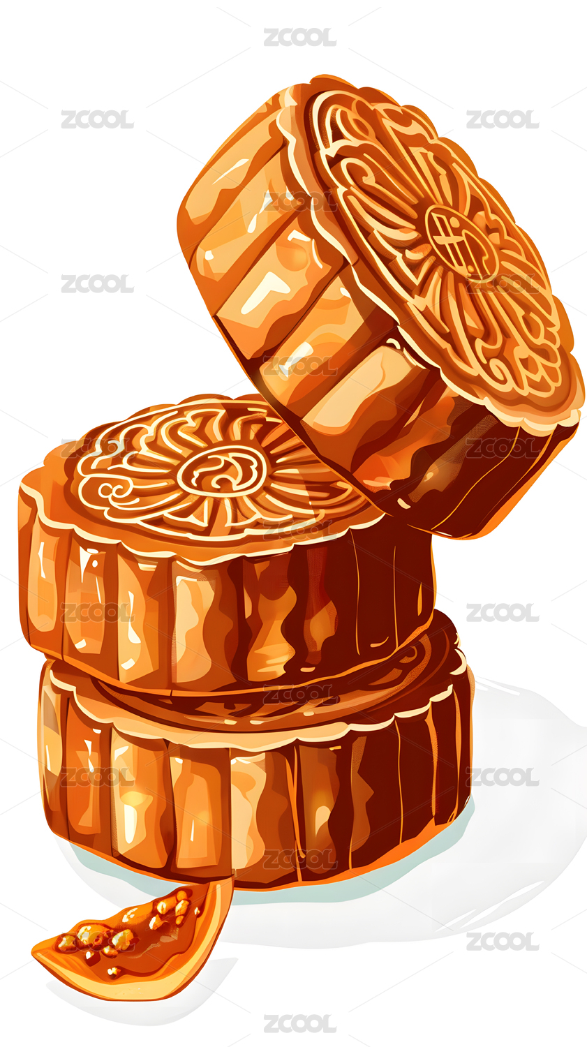 插画,月饼,切开,黄色,东方,中式,传统,节日,甜点,食物