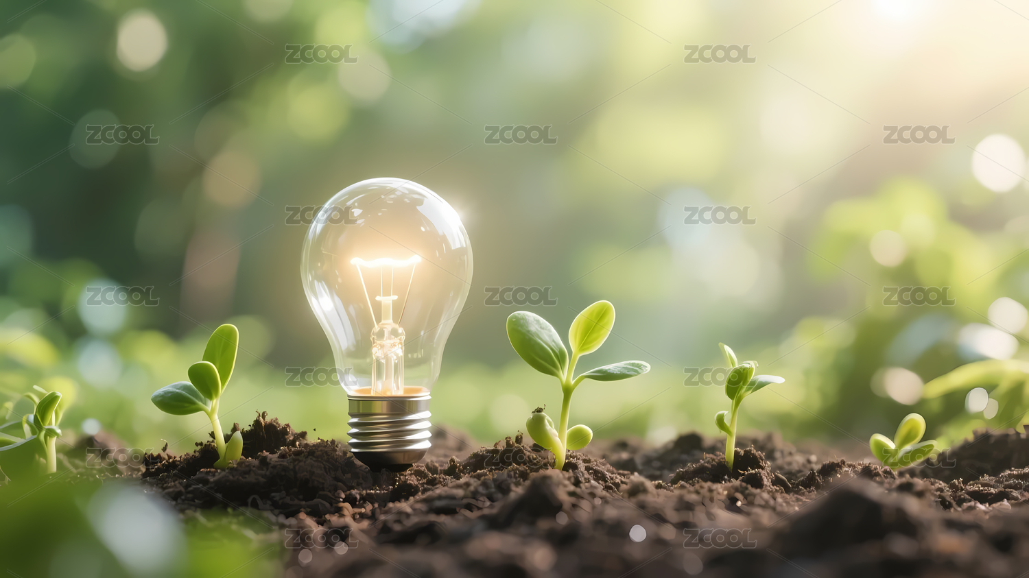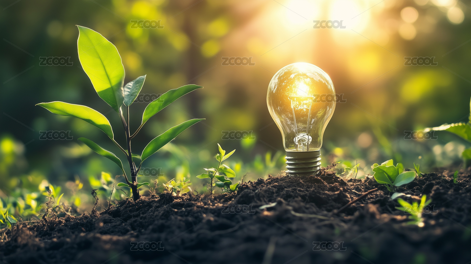 电灯泡与绿色植物组成的节能环保场景