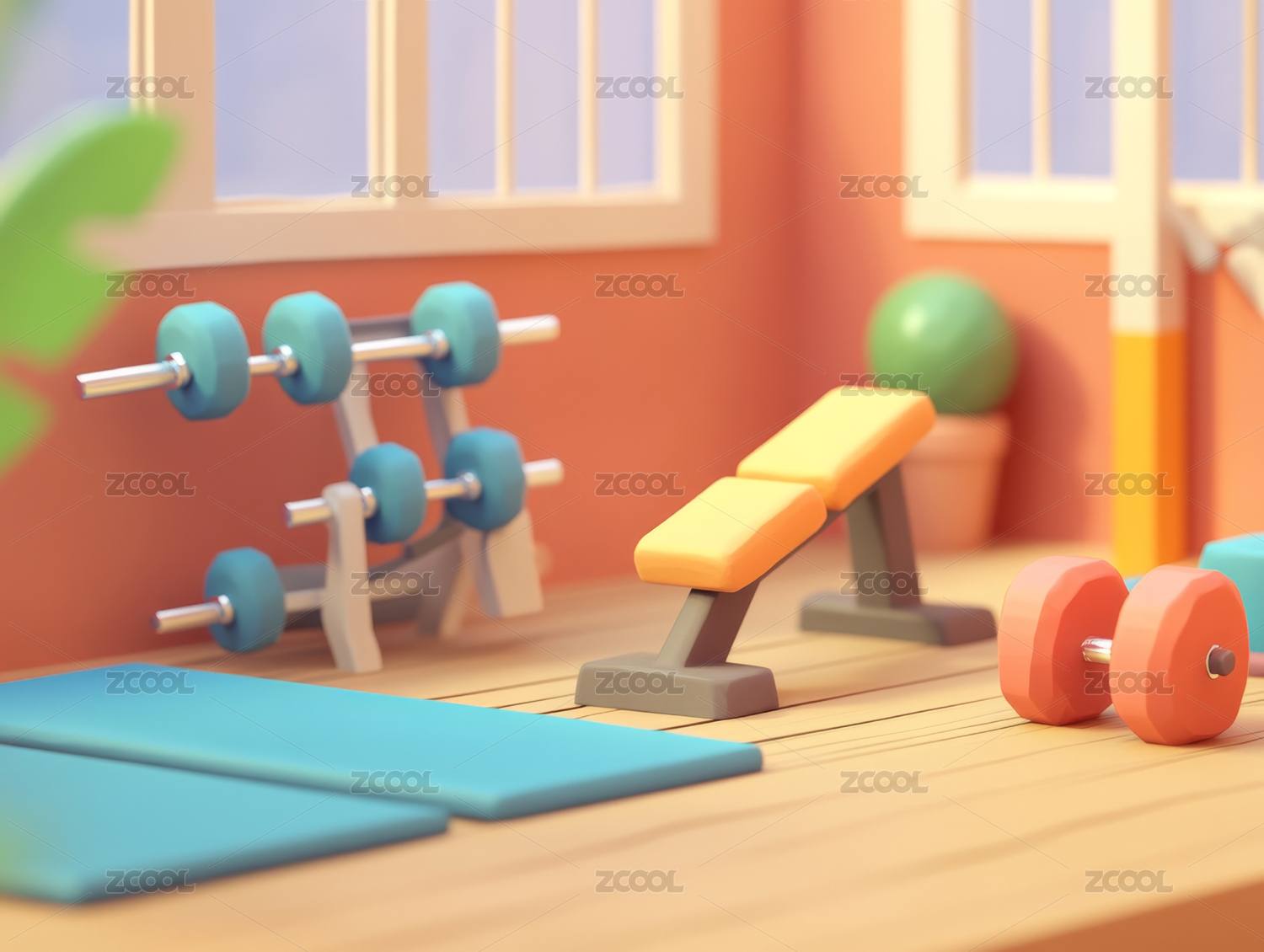 健身房,玩具,健身,器材,哑铃,瑜伽垫,球,树,室内,运动