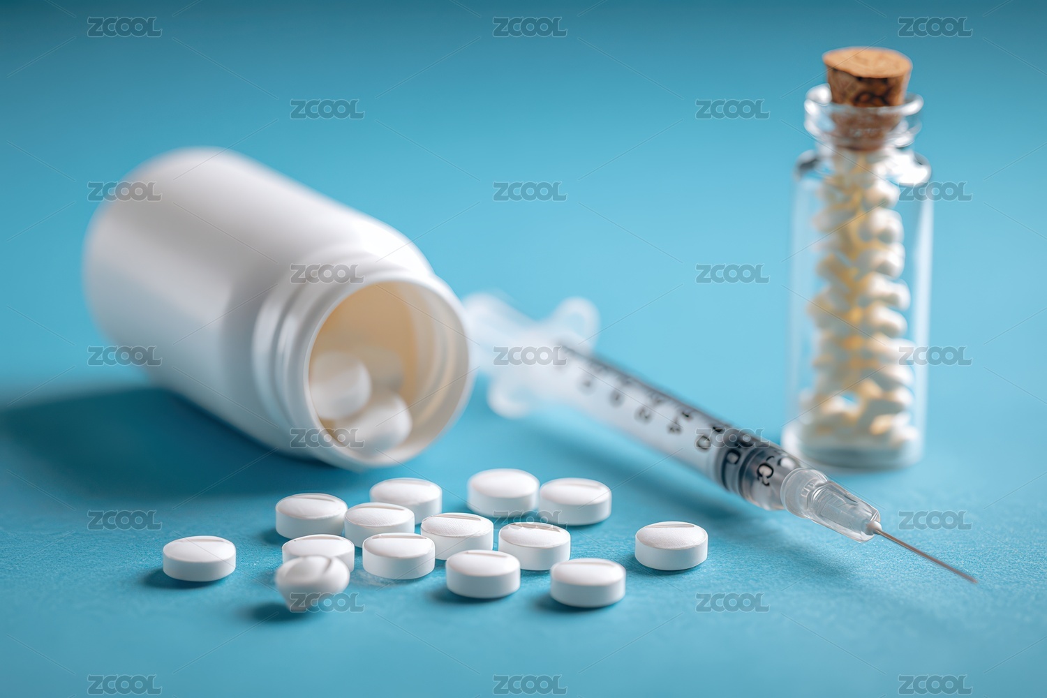 注射器与白色药片