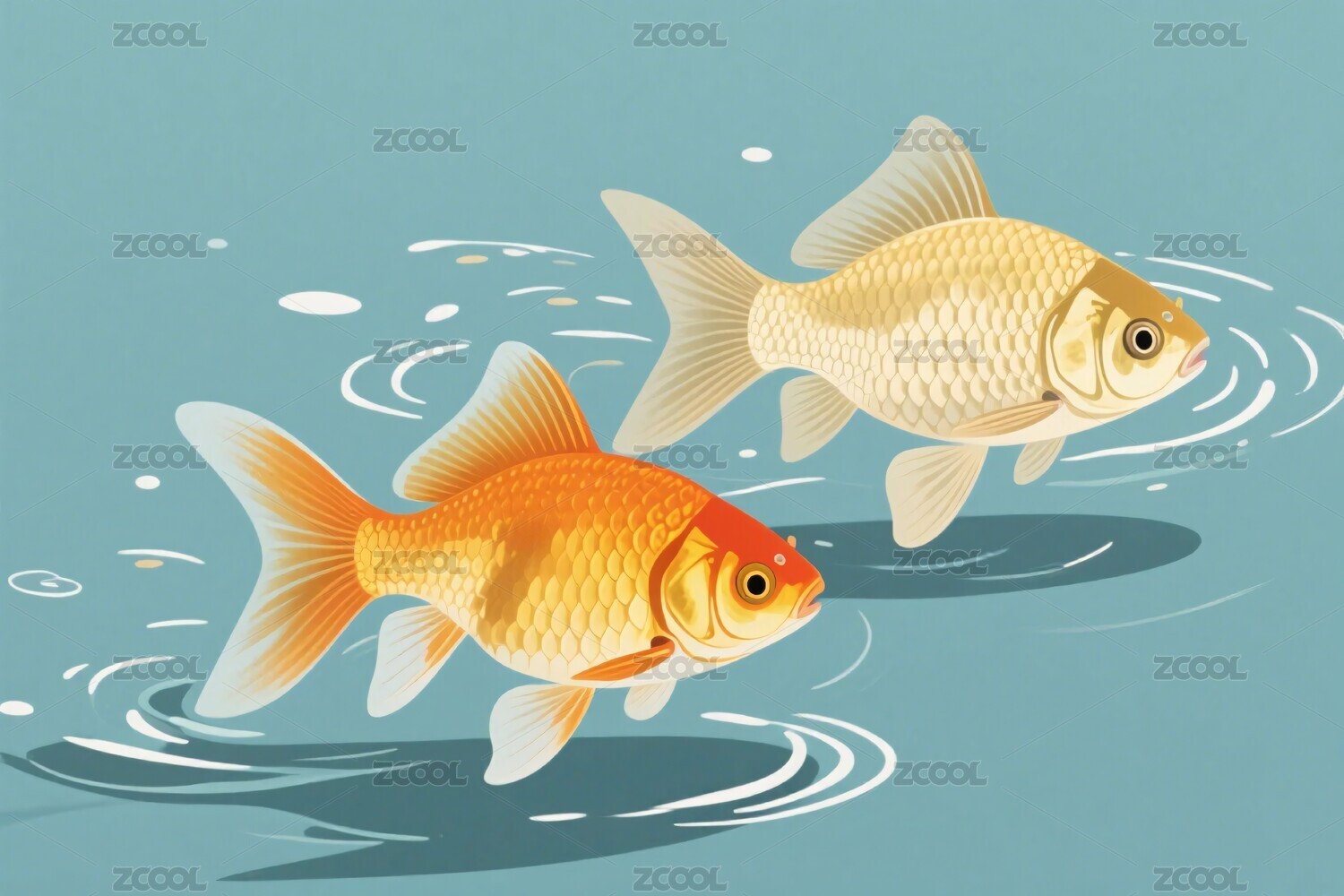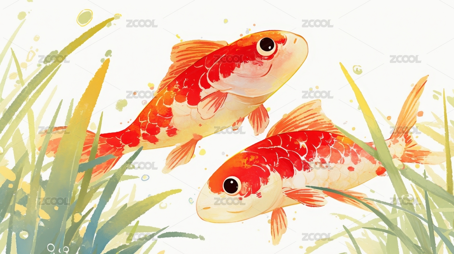 两只金鱼的插画